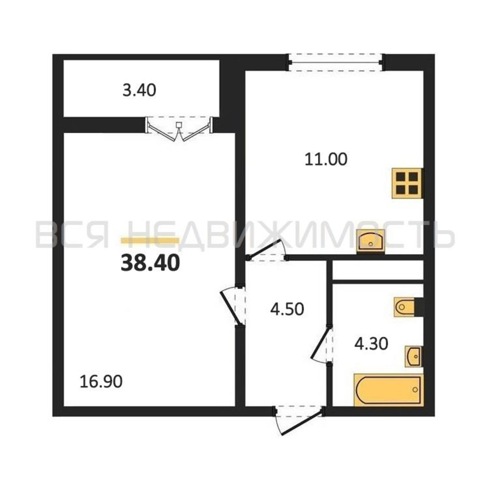 Строительная площадь38.40 м²