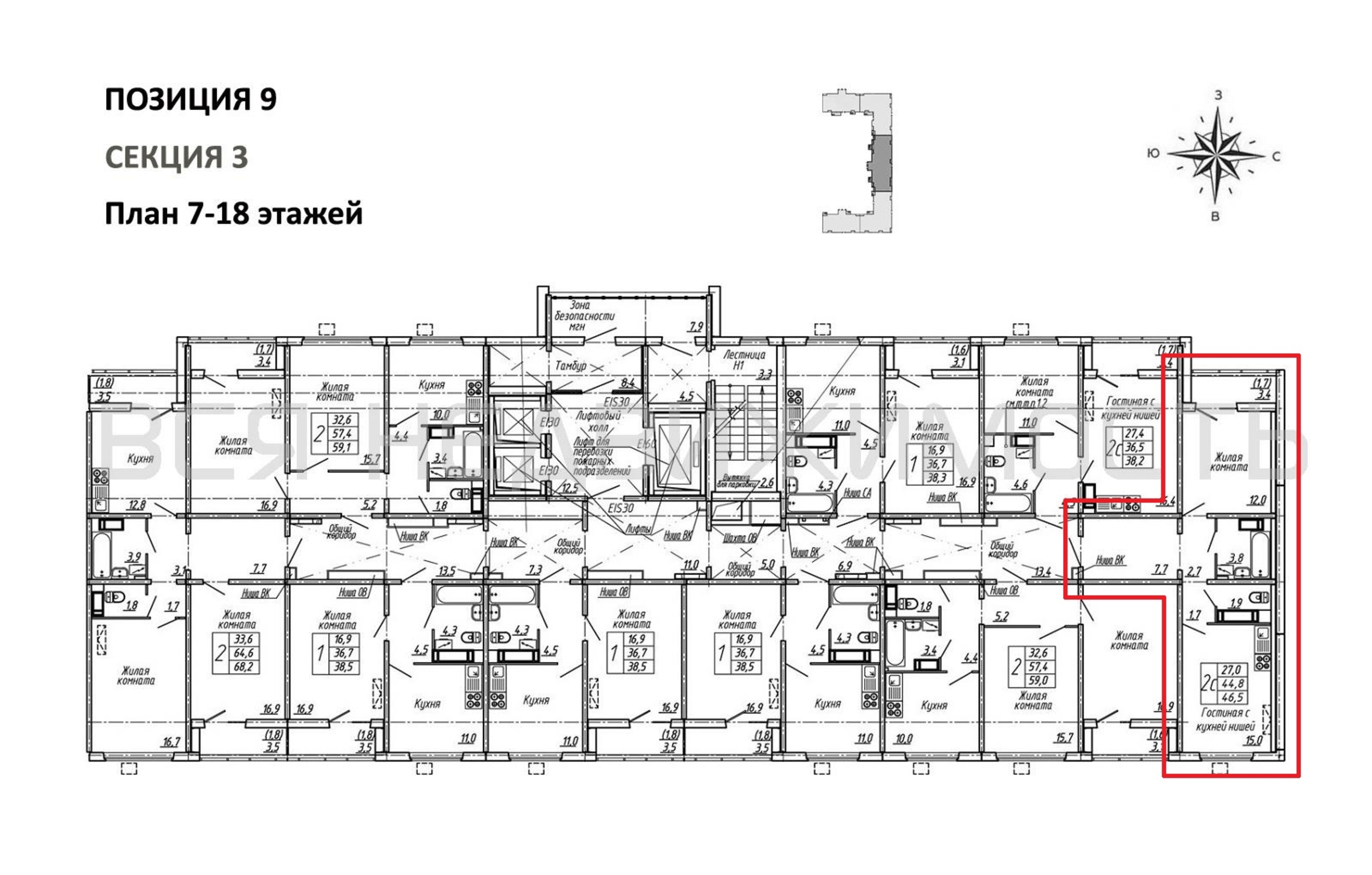 1-комнатная квартира, 46.50 м² 8/19 этаж ID объекта 100123794