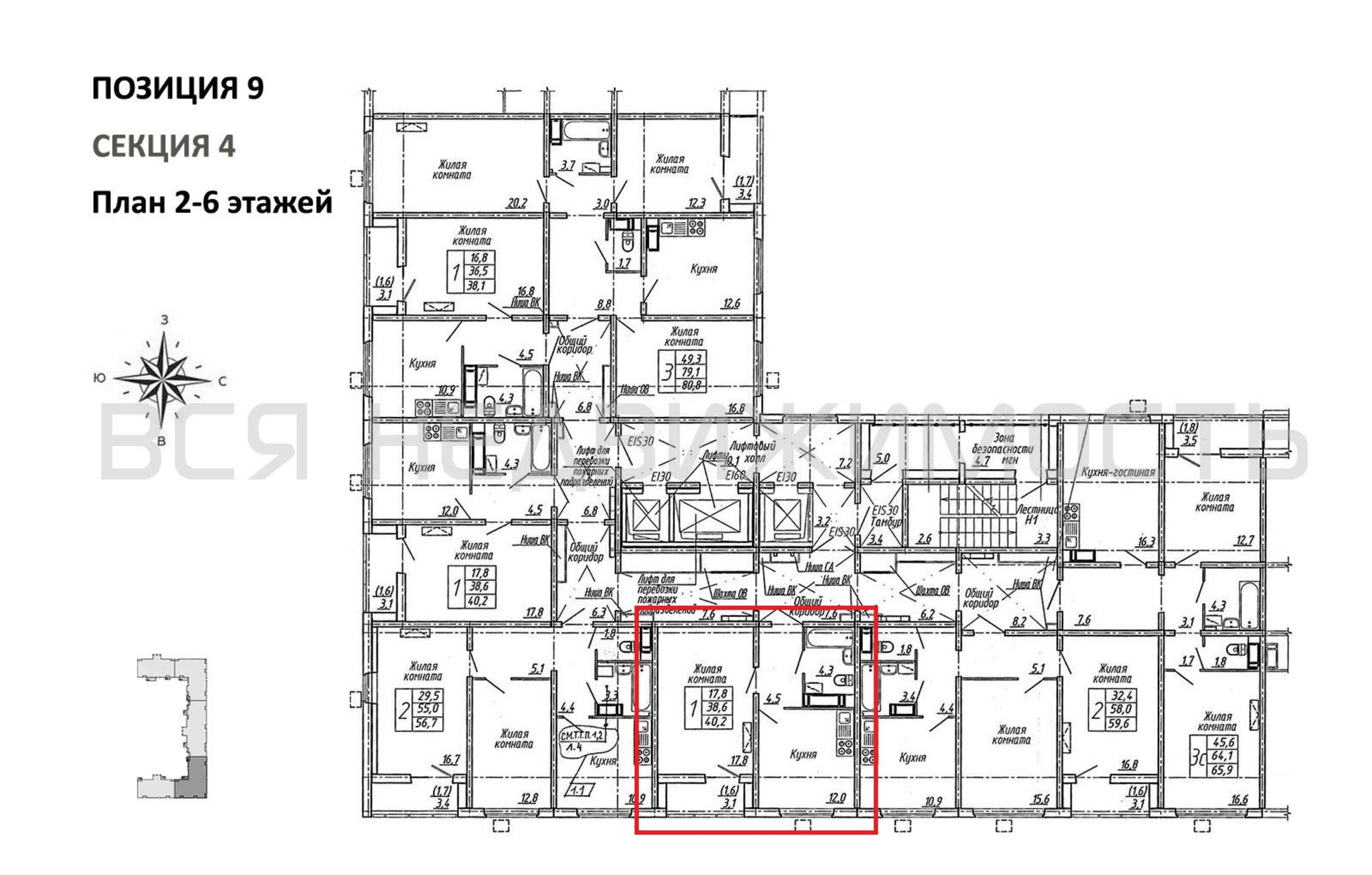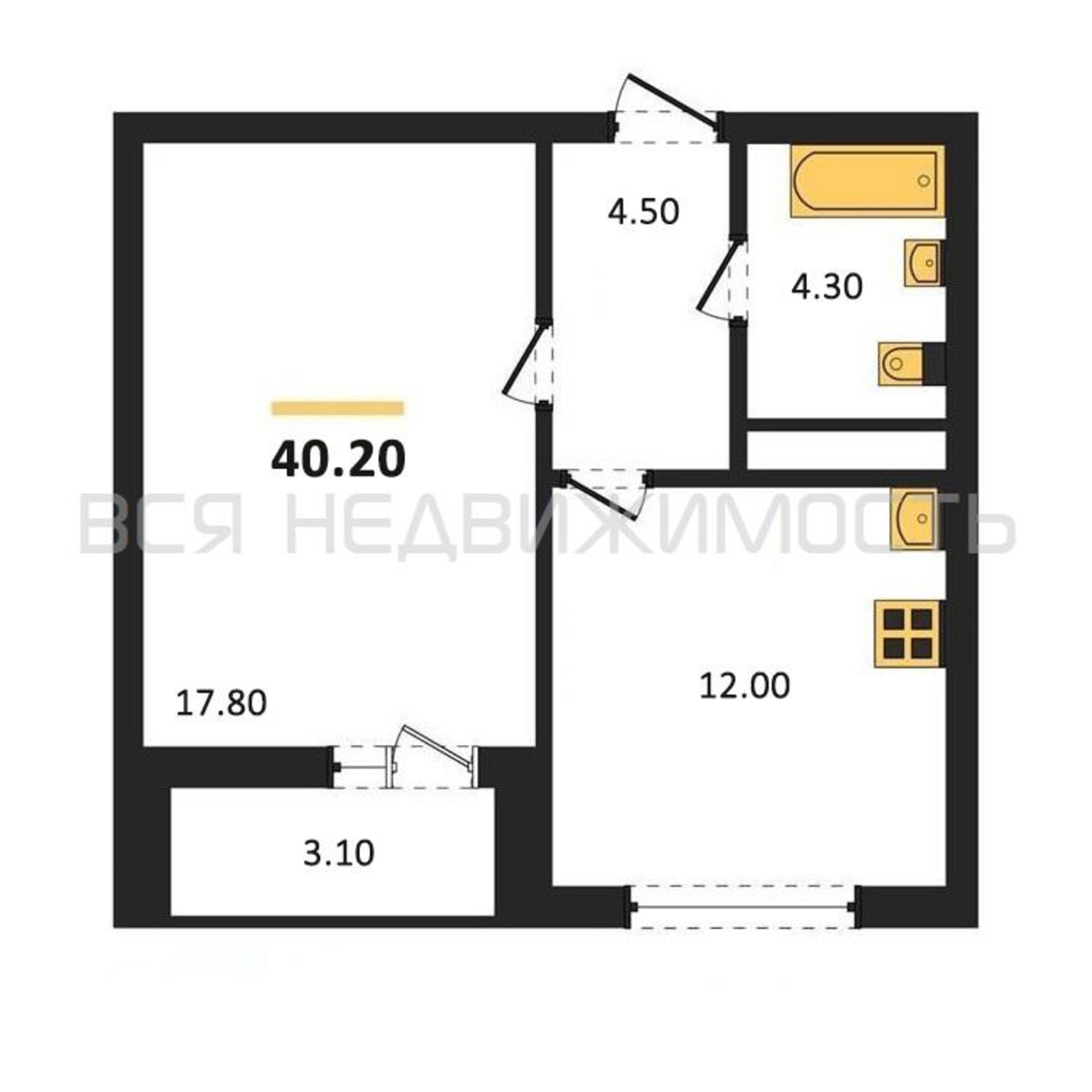 1-комнатная квартира, 40.20 м² 4/19 этаж ID объекта 100123922