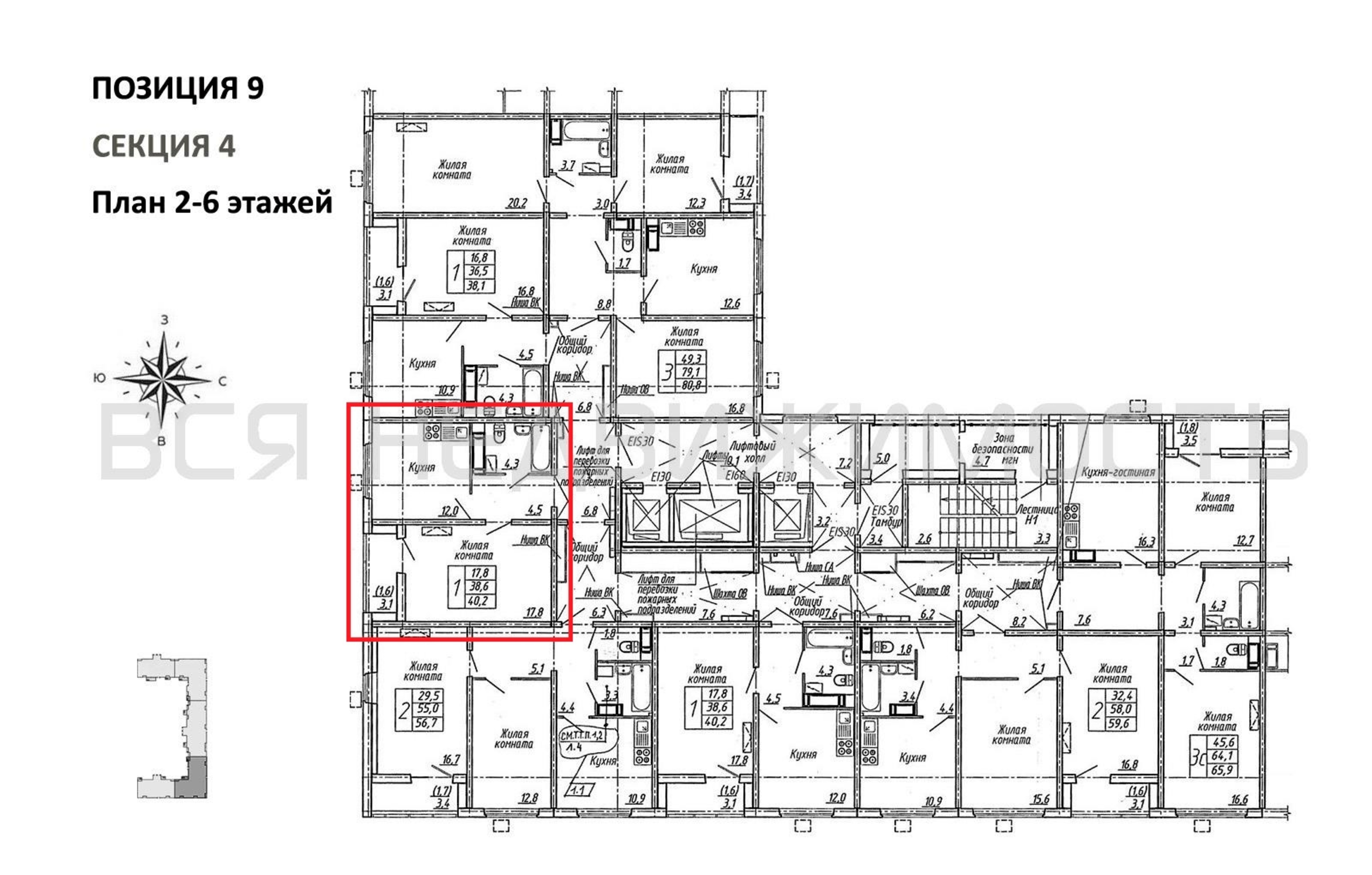 1-комнатная квартира, 40.20 м² 4/19 этаж ID объекта 100123924