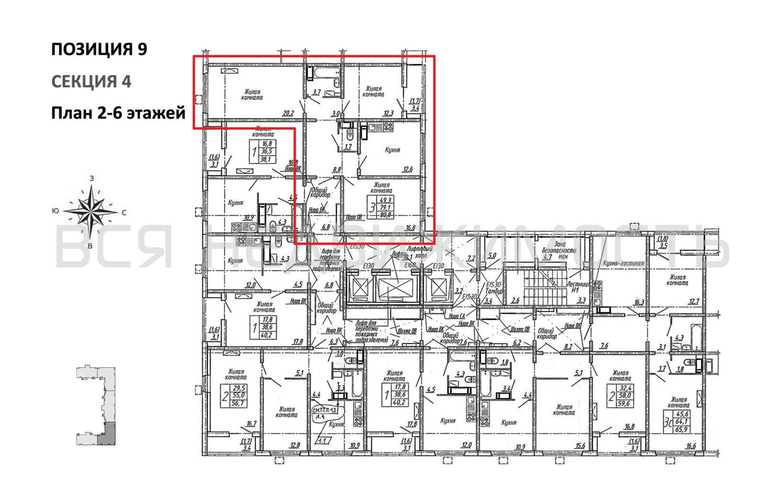 3-комнатная квартира, 80.80 м² 4/19 этаж ID объекта 100123926