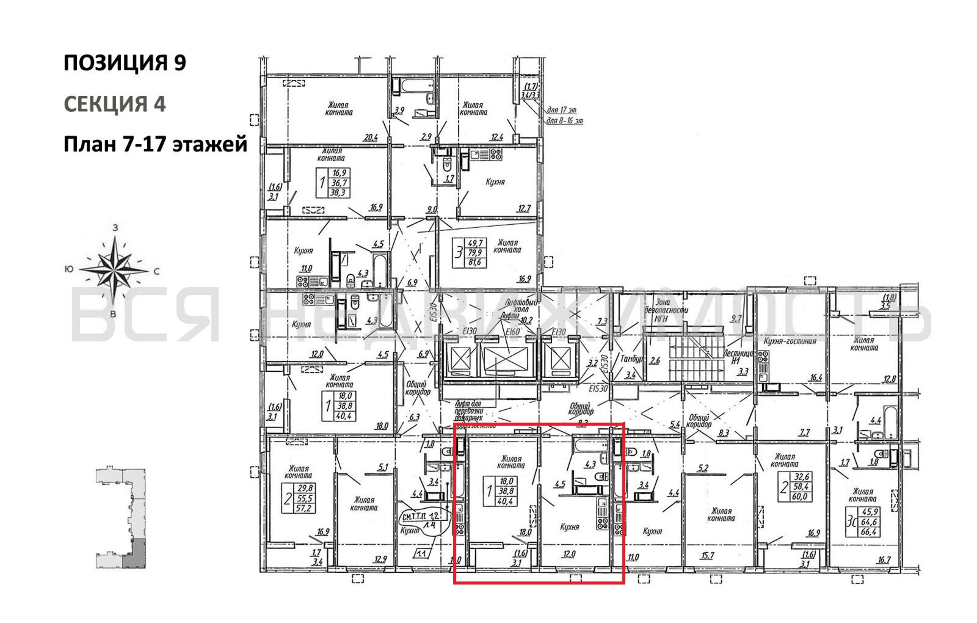 1-комнатная квартира, 40.40 м² 8/19 этаж ID объекта 100123950