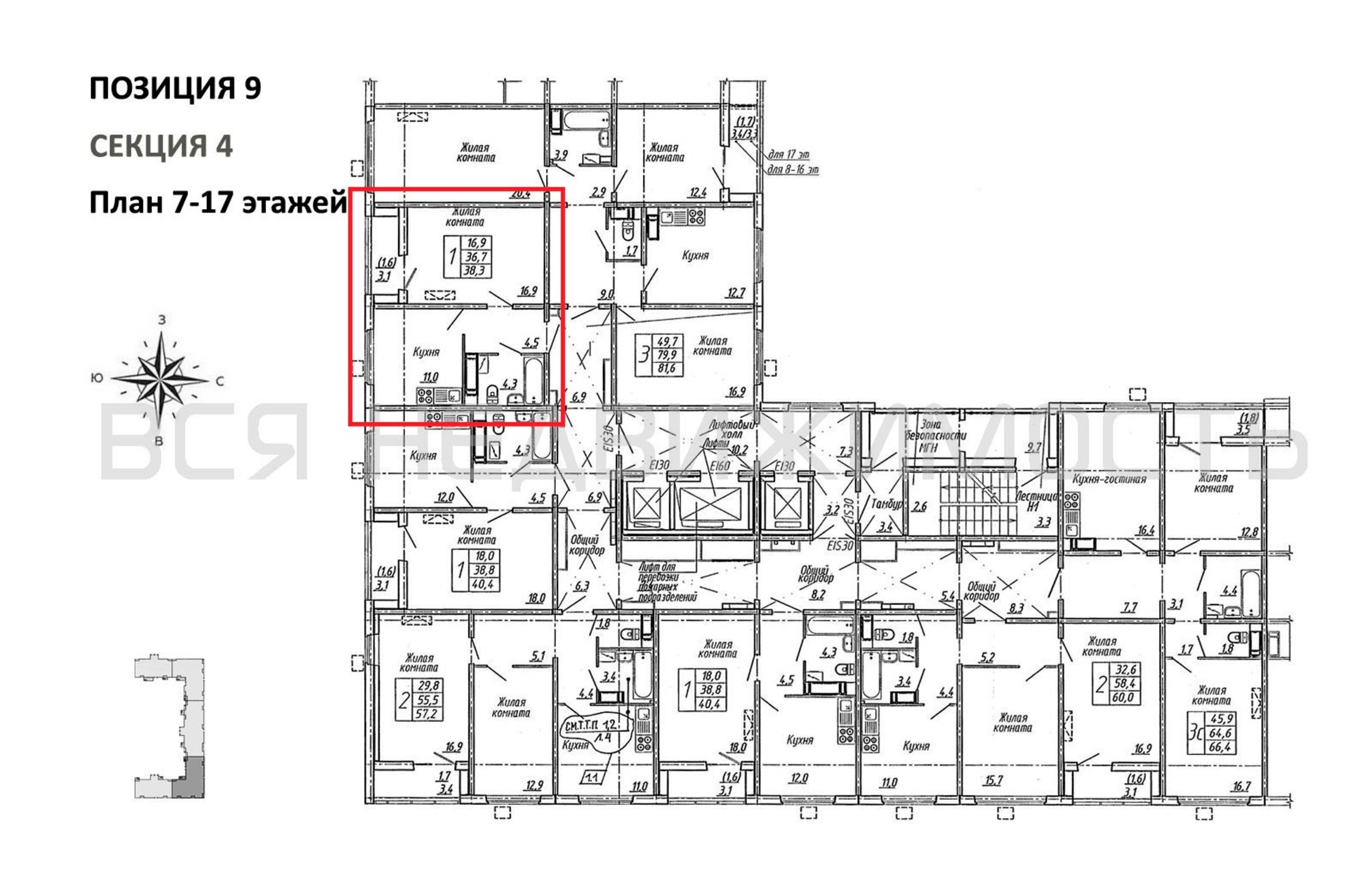 1-комнатная квартира, 38.30 м² 17/19 этаж ID объекта 100124016