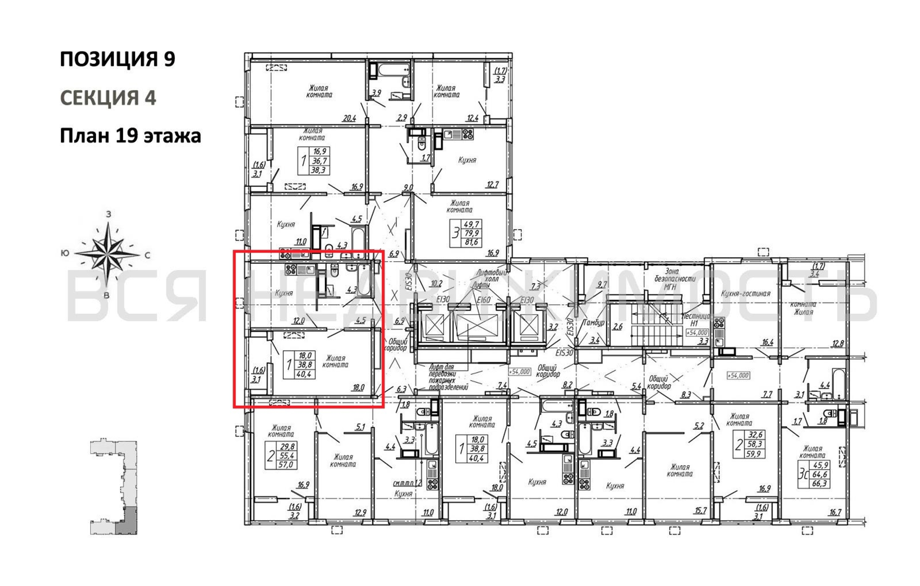 1-комнатная квартира, 40.40 м² 19/19 этаж ID объекта 100124029