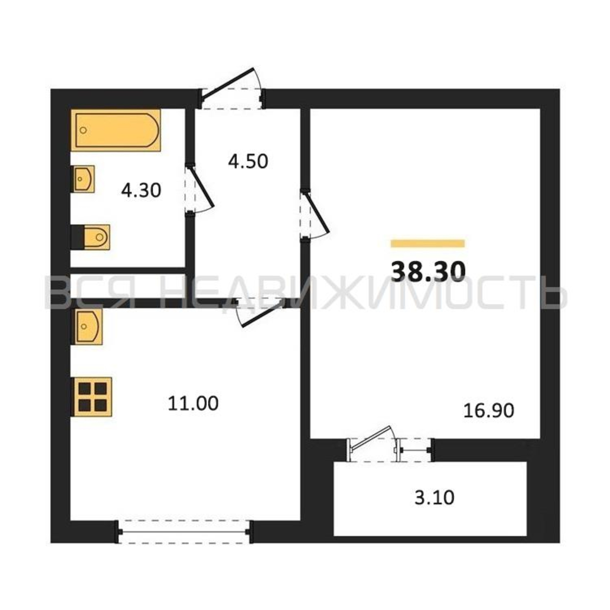 Строительная площадь38.30 м²