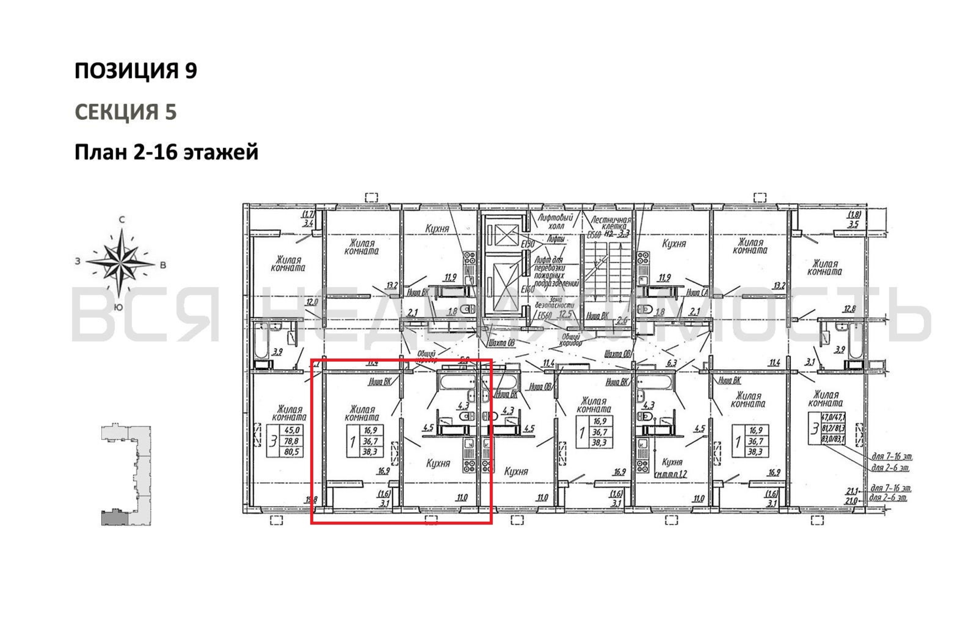 1-комнатная квартира, 38.30 м² 8/17 этаж ID объекта 100124069