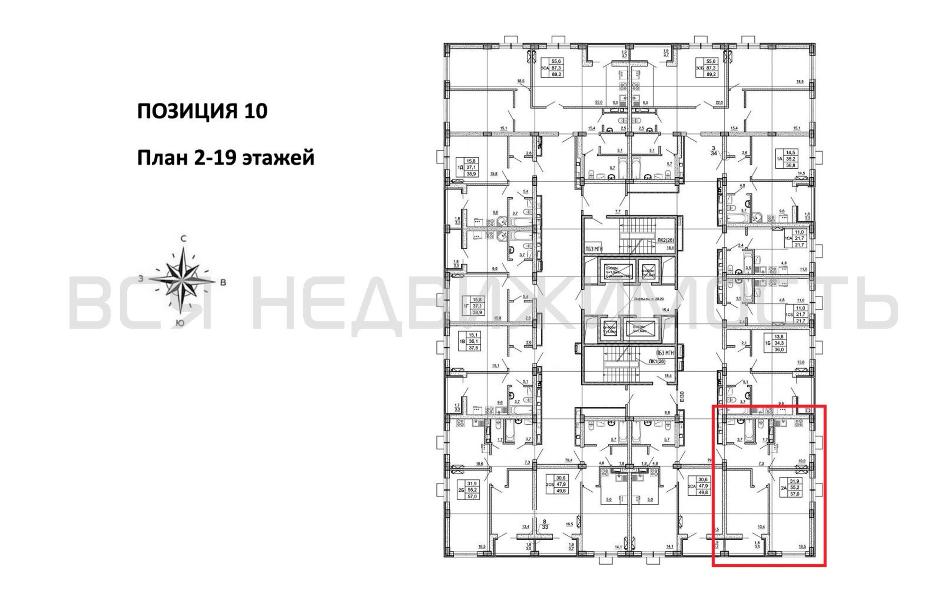 2-комнатная квартира, 57.00 м² 9/19 этаж ID объекта 100124220
