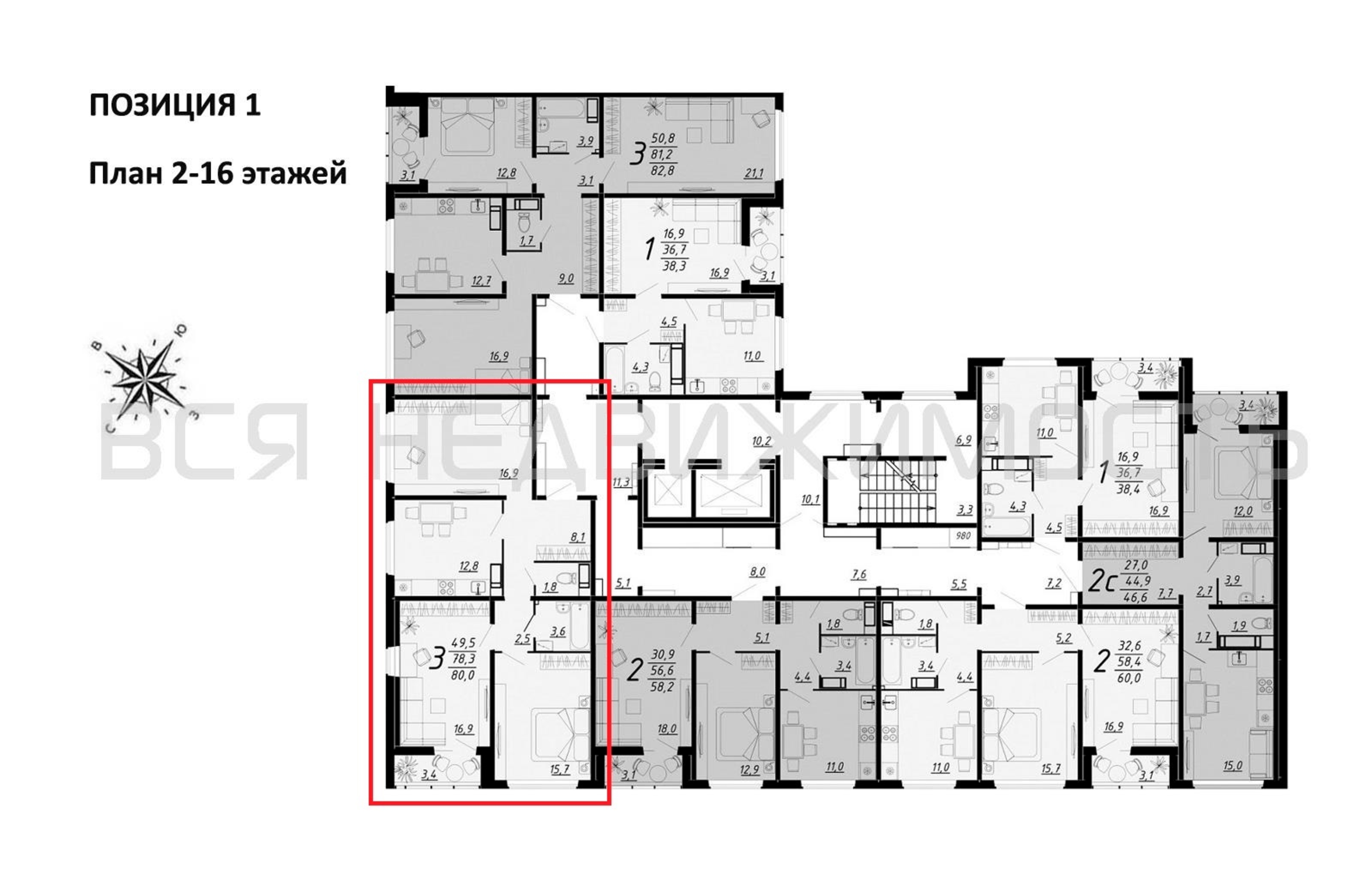 3-комнатная квартира, 80.00 м² 11/16 этаж ID объекта 100124419