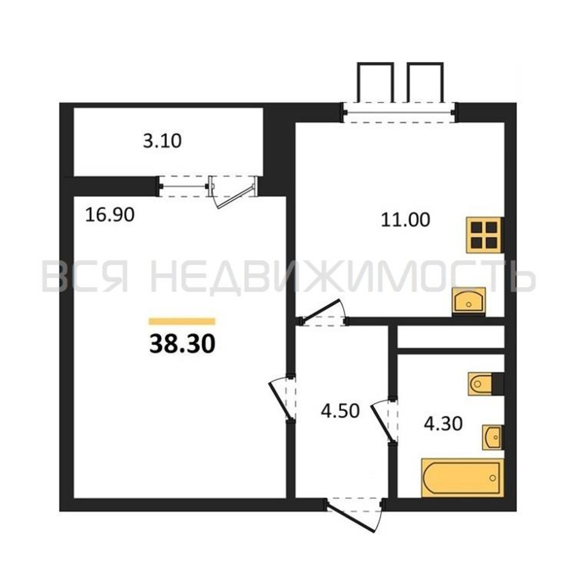Строительная площадь38.30 м²