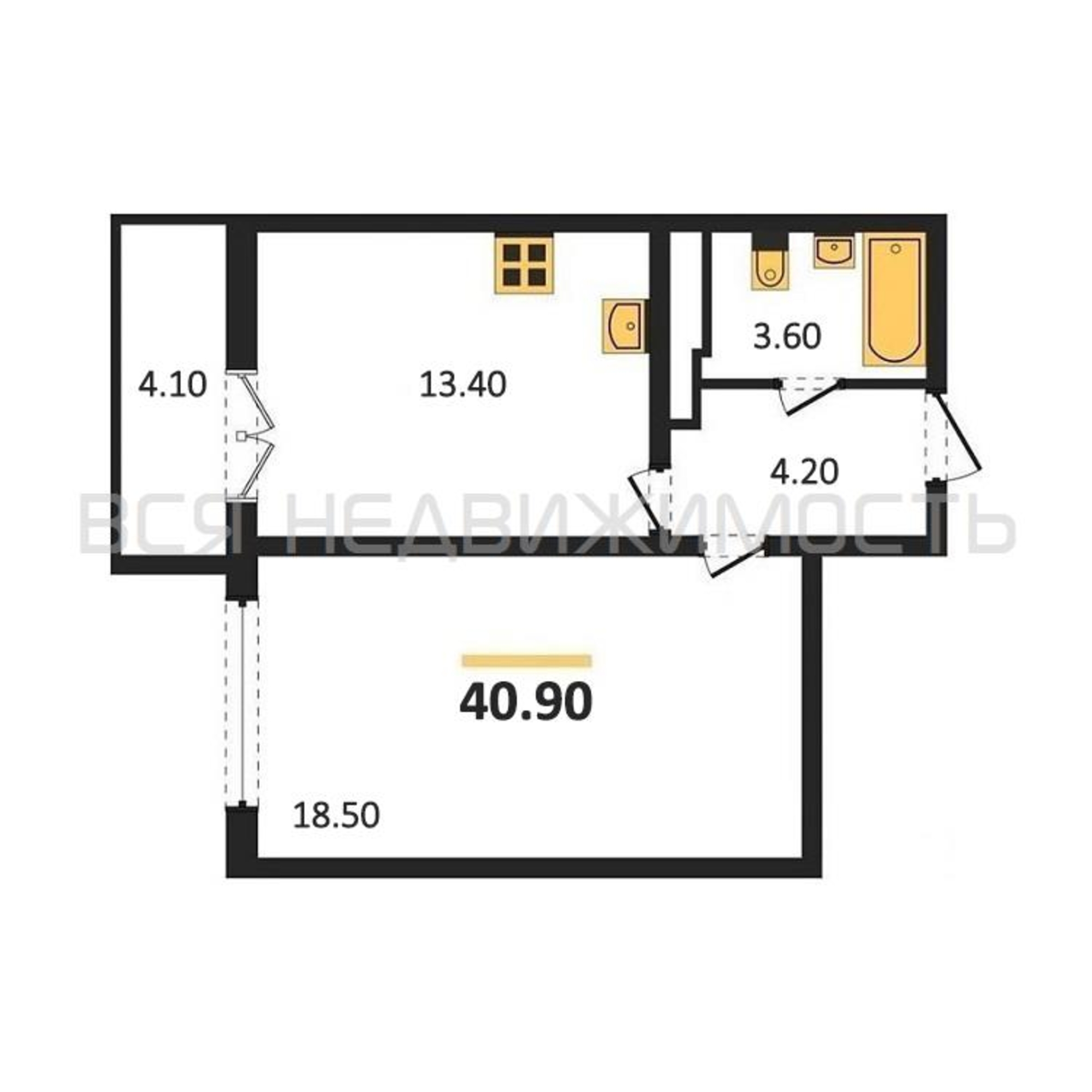 Строительная площадь40.90 м²