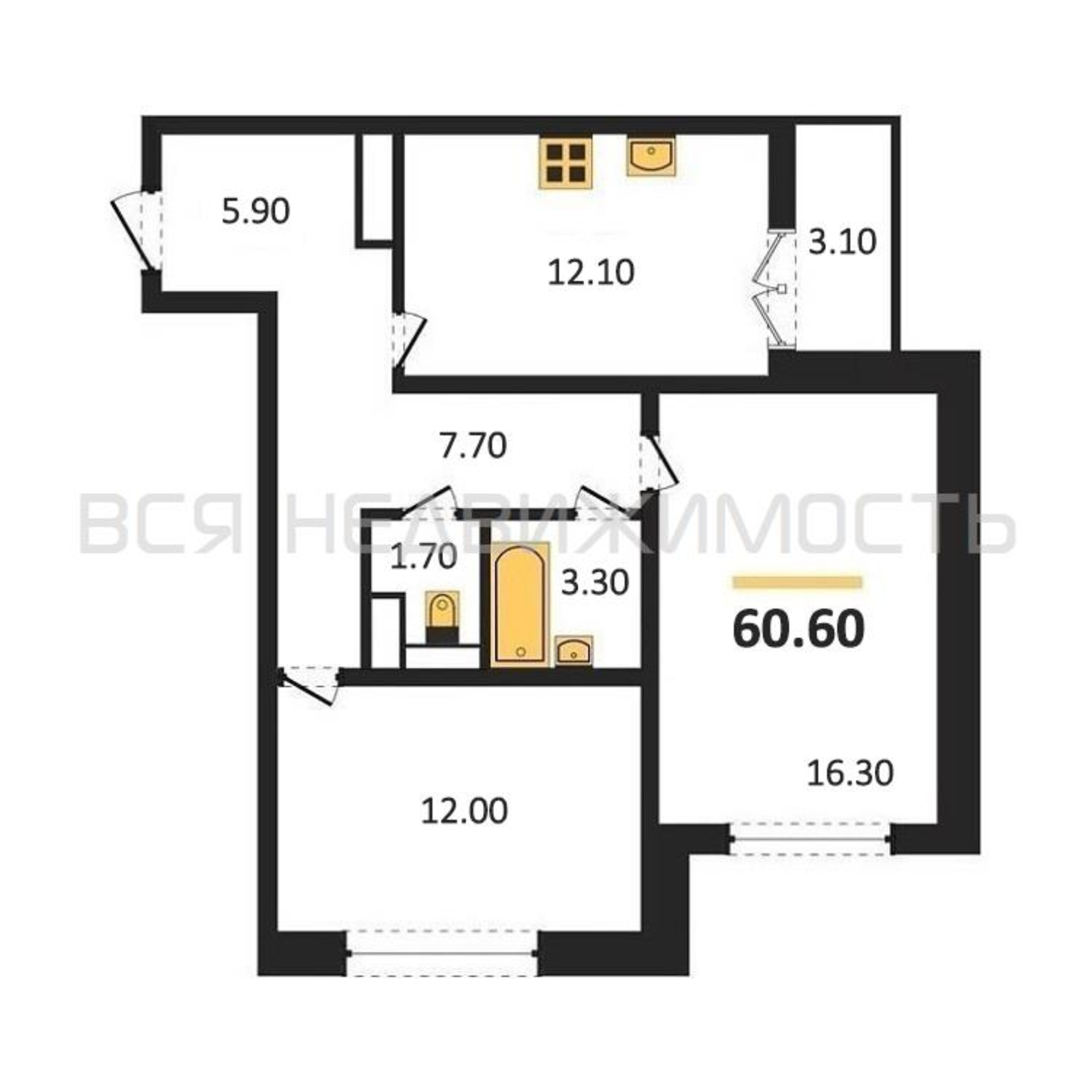 Строительная площадь60.60 м²