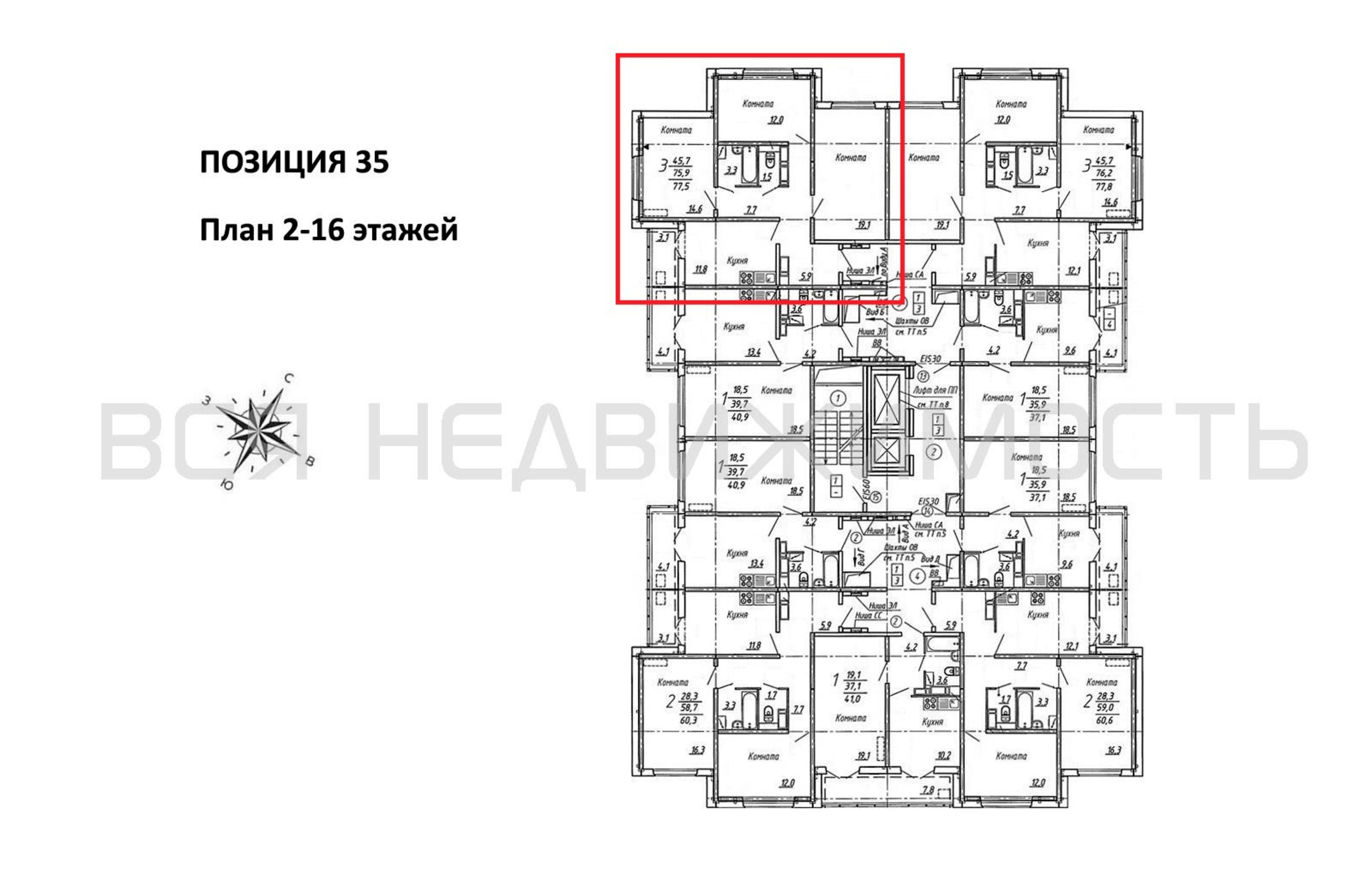 3-комнатная квартира, 77.50 м² 15/17 этаж ID объекта 100124828