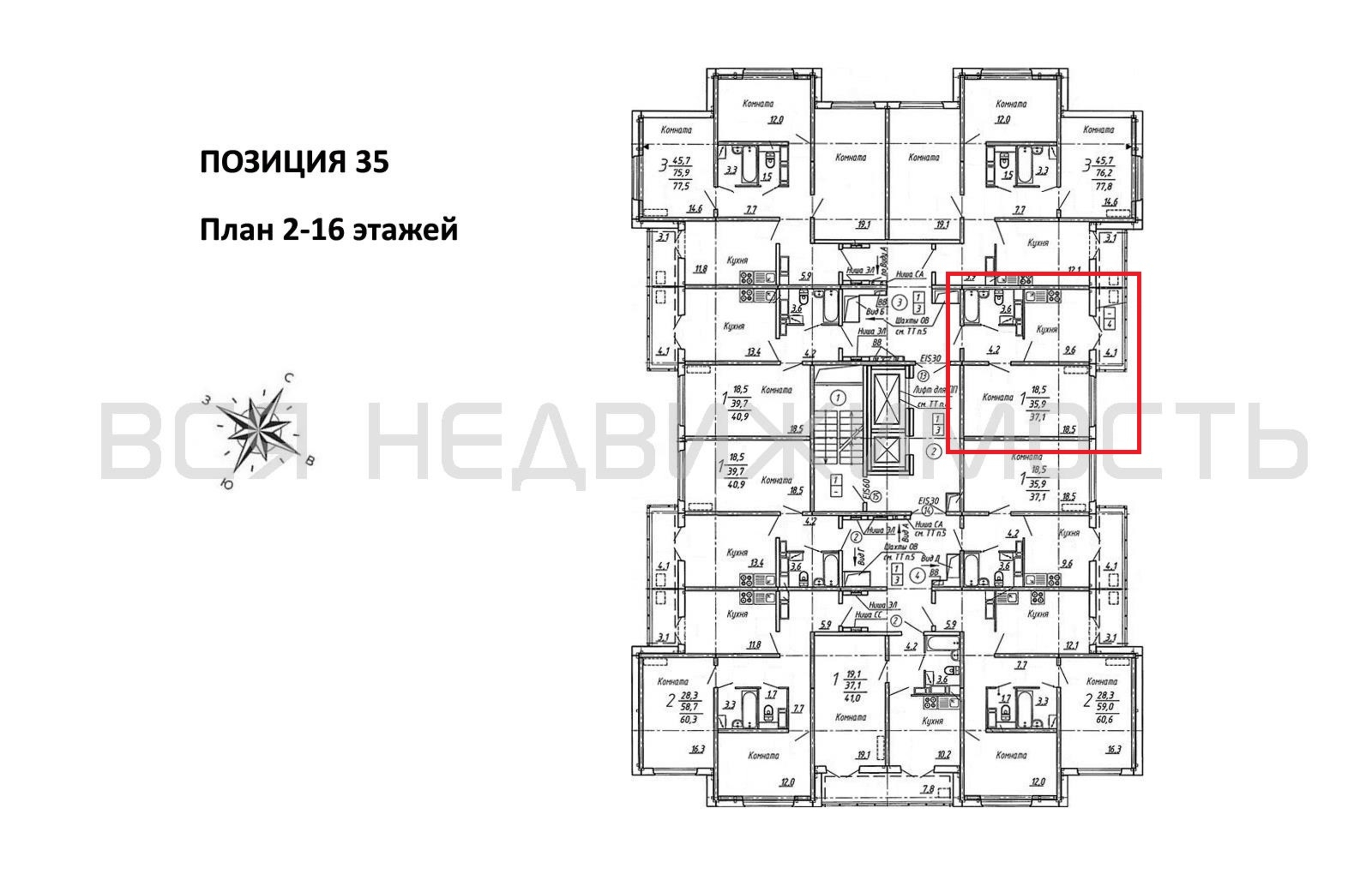 1-комнатная квартира, 37.10 м² 15/17 этаж ID объекта 100124830