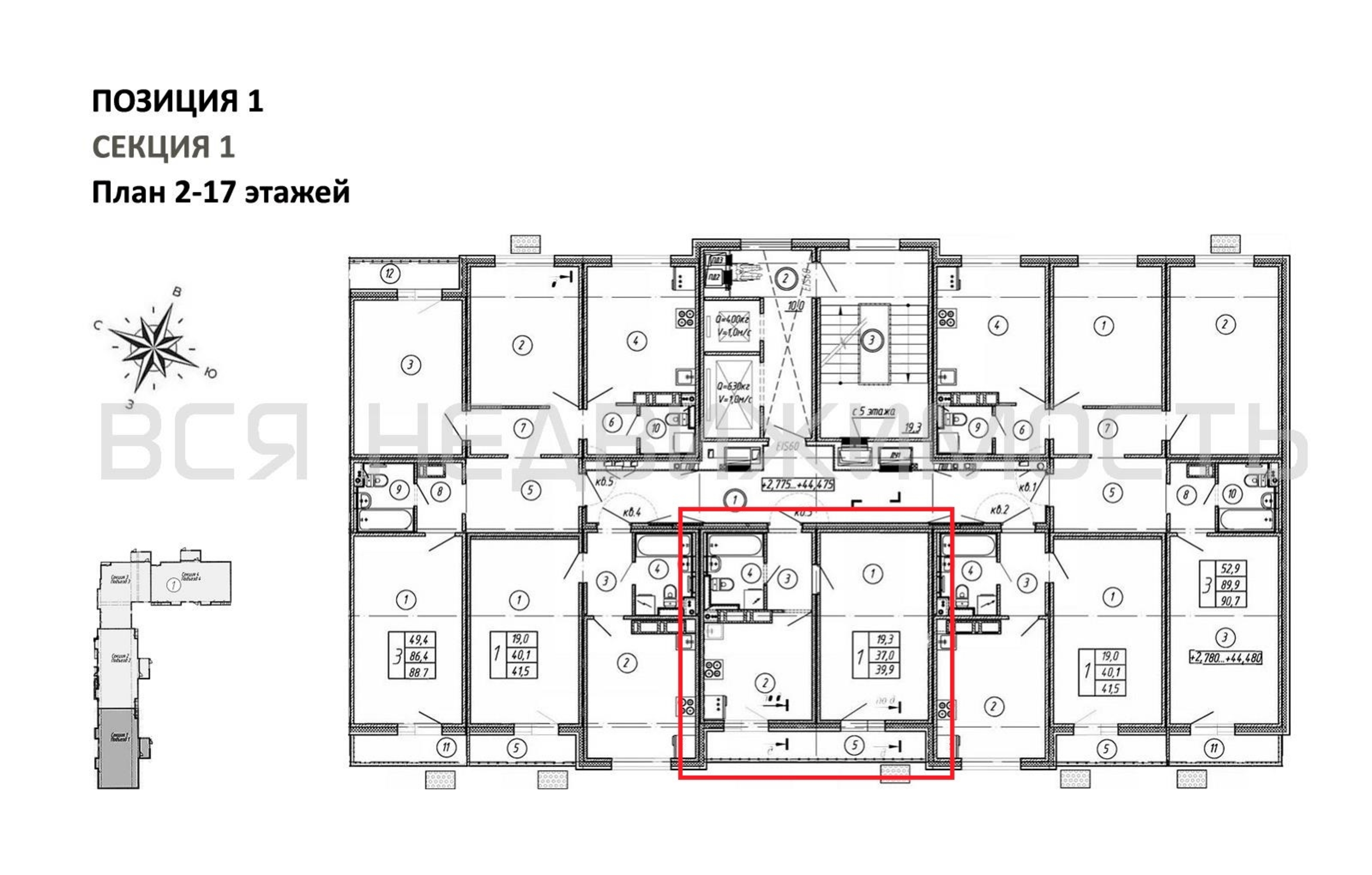 1-комнатная квартира, 39.90 м² 2/17 этаж ID объекта 100124861