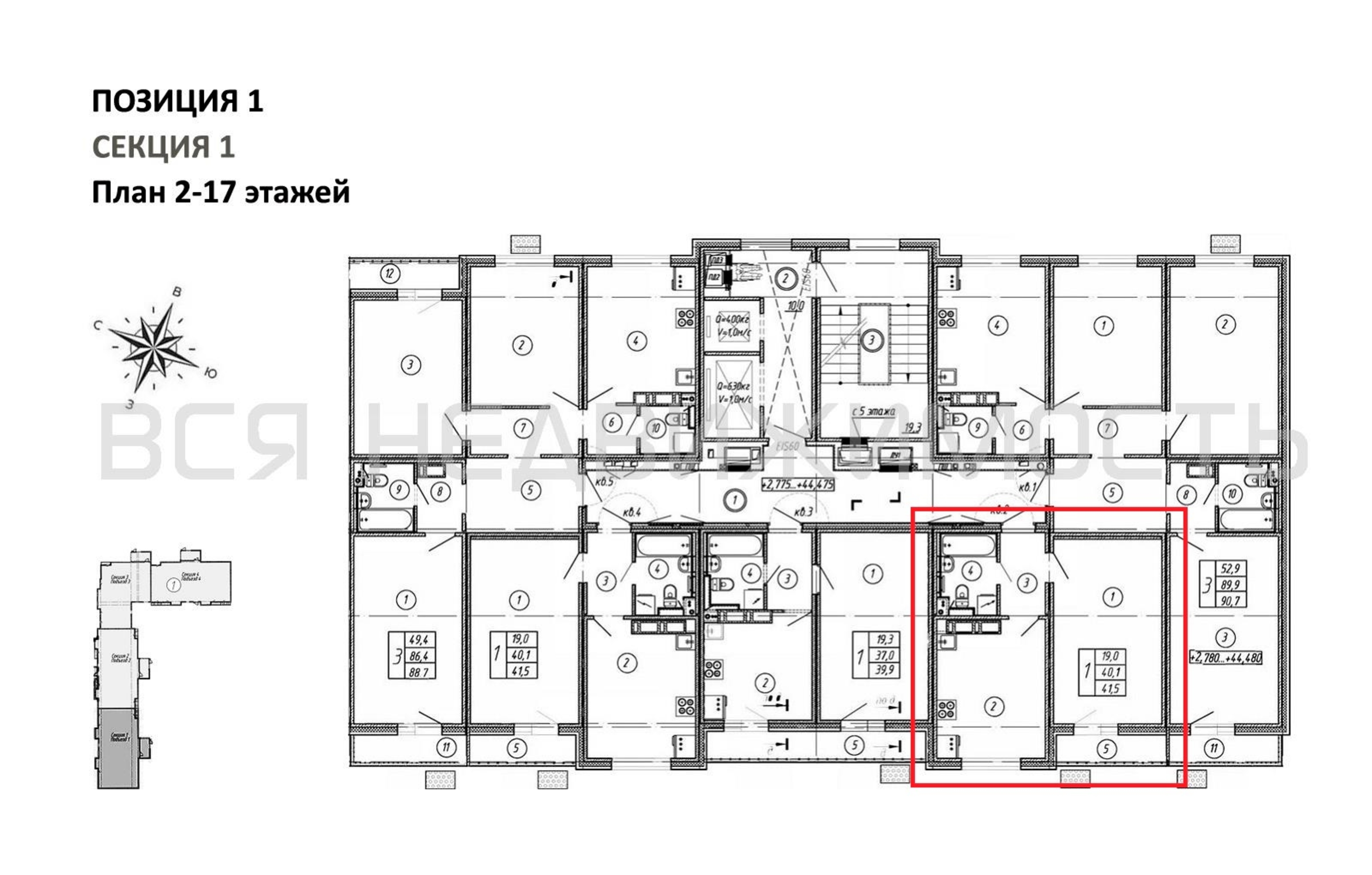 1-комнатная квартира, 41.50 м² 5/17 этаж ID объекта 100124875