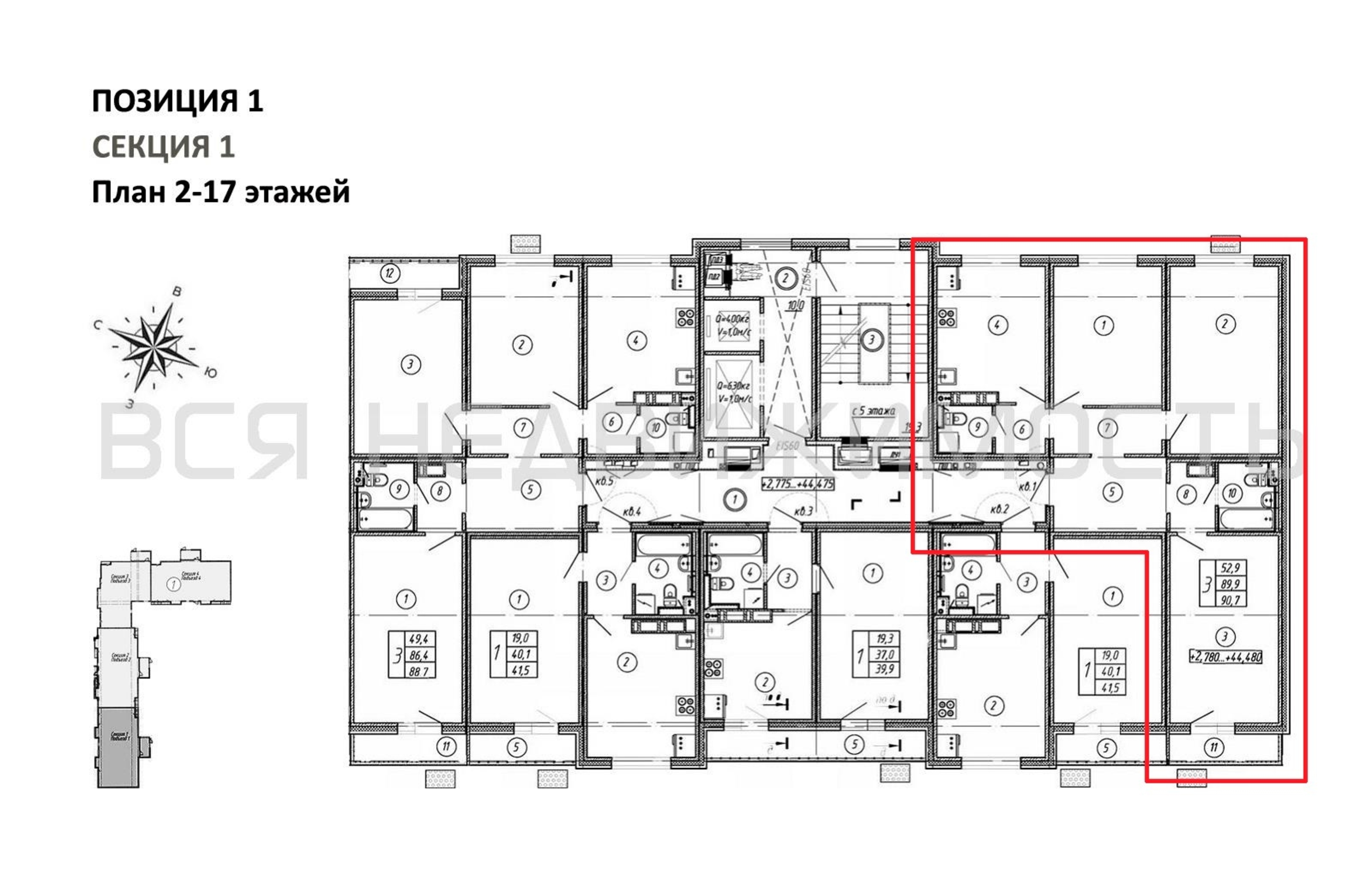 3-комнатная квартира, 90.70 м² 8/17 этаж ID объекта 100124889