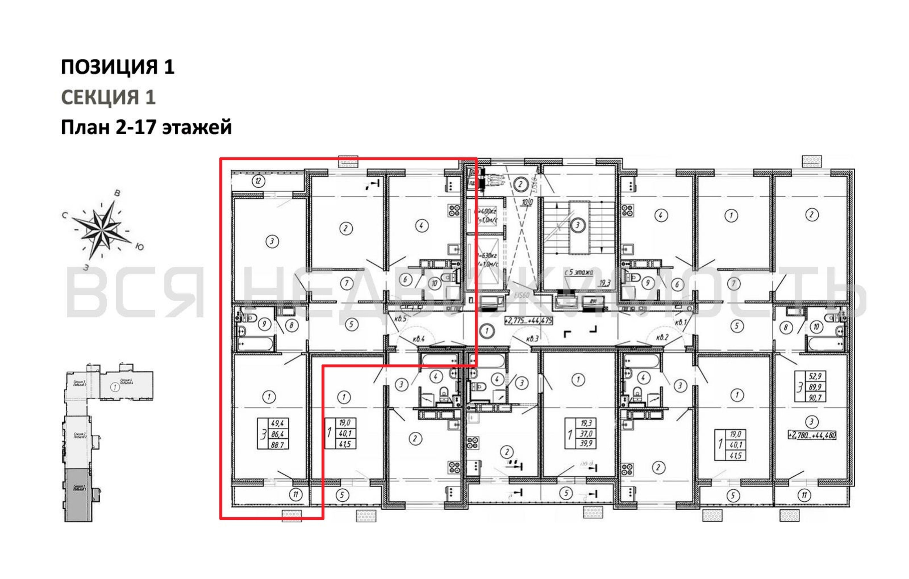 3-комнатная квартира, 88.70 м² 16/17 этаж ID объекта 100124933