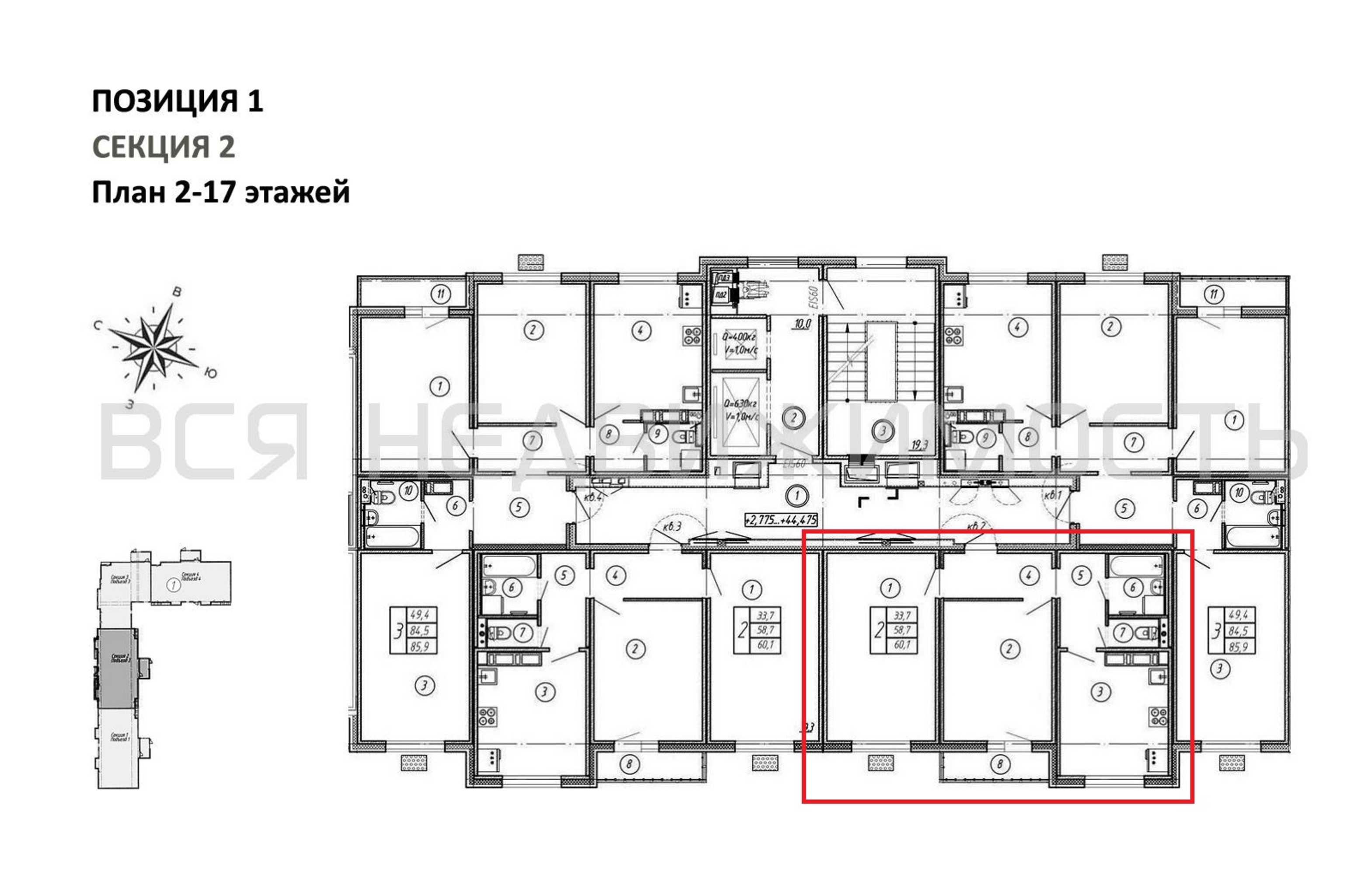 2-комнатная квартира, 60.10 м² 3/17 этаж ID объекта 100124948