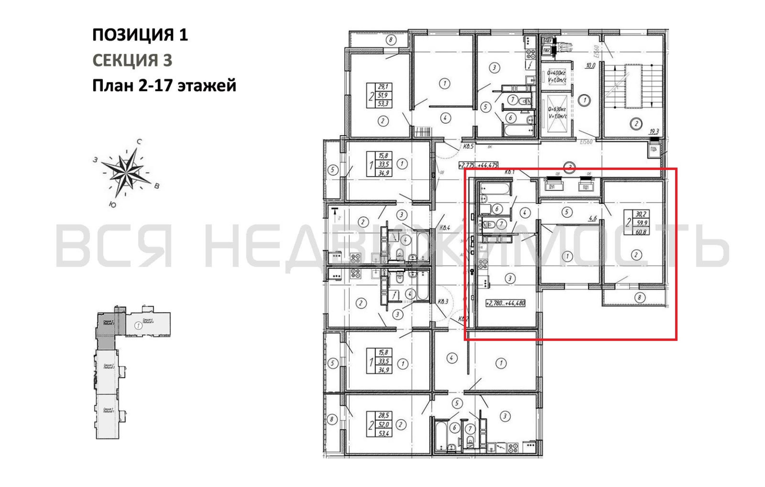 2-комнатная квартира, 60.80 м² 7/17 этаж ID объекта 100125037