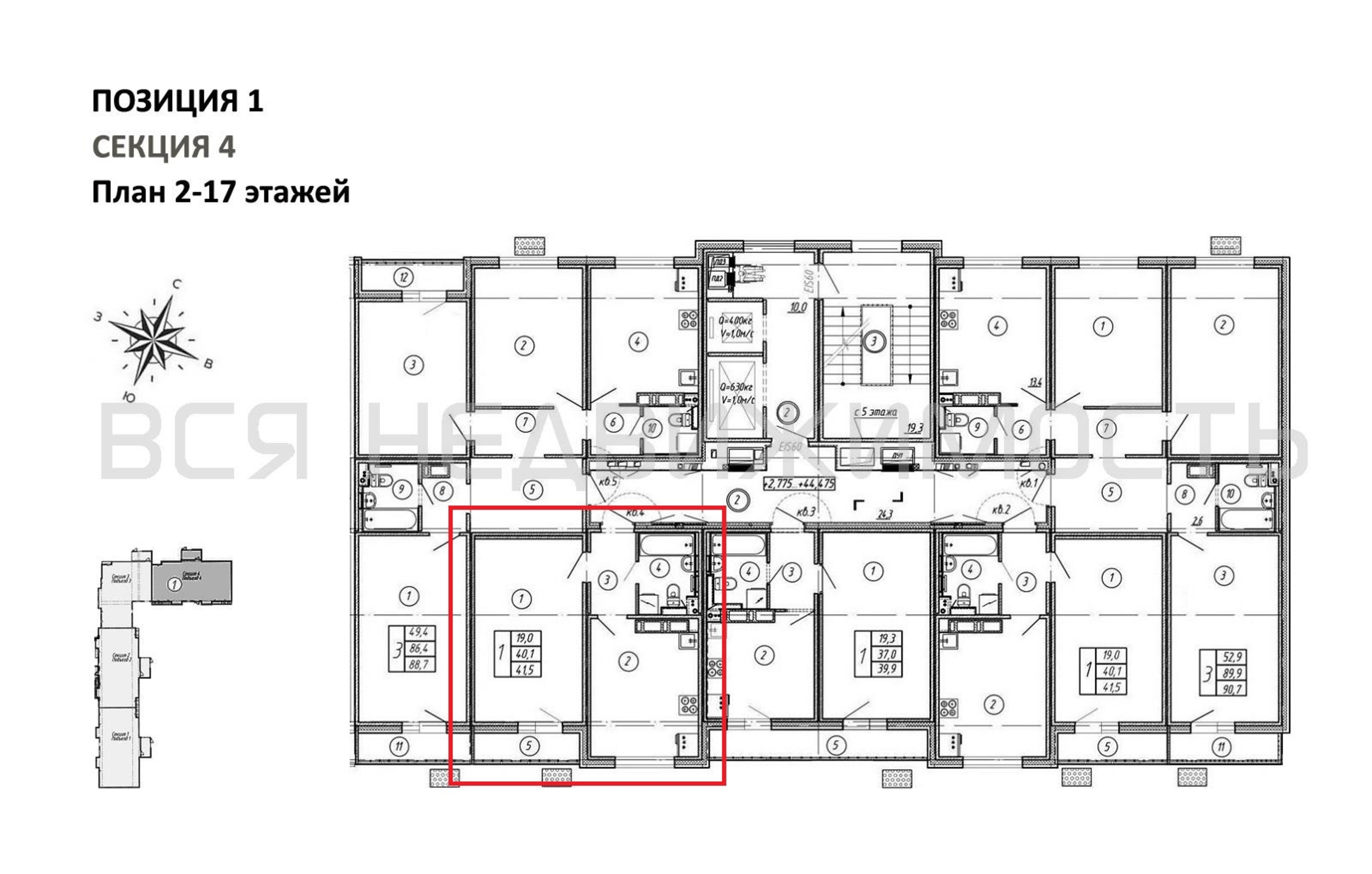 1-комнатная квартира, 41.50 м² 16/17 этаж ID объекта 100125169