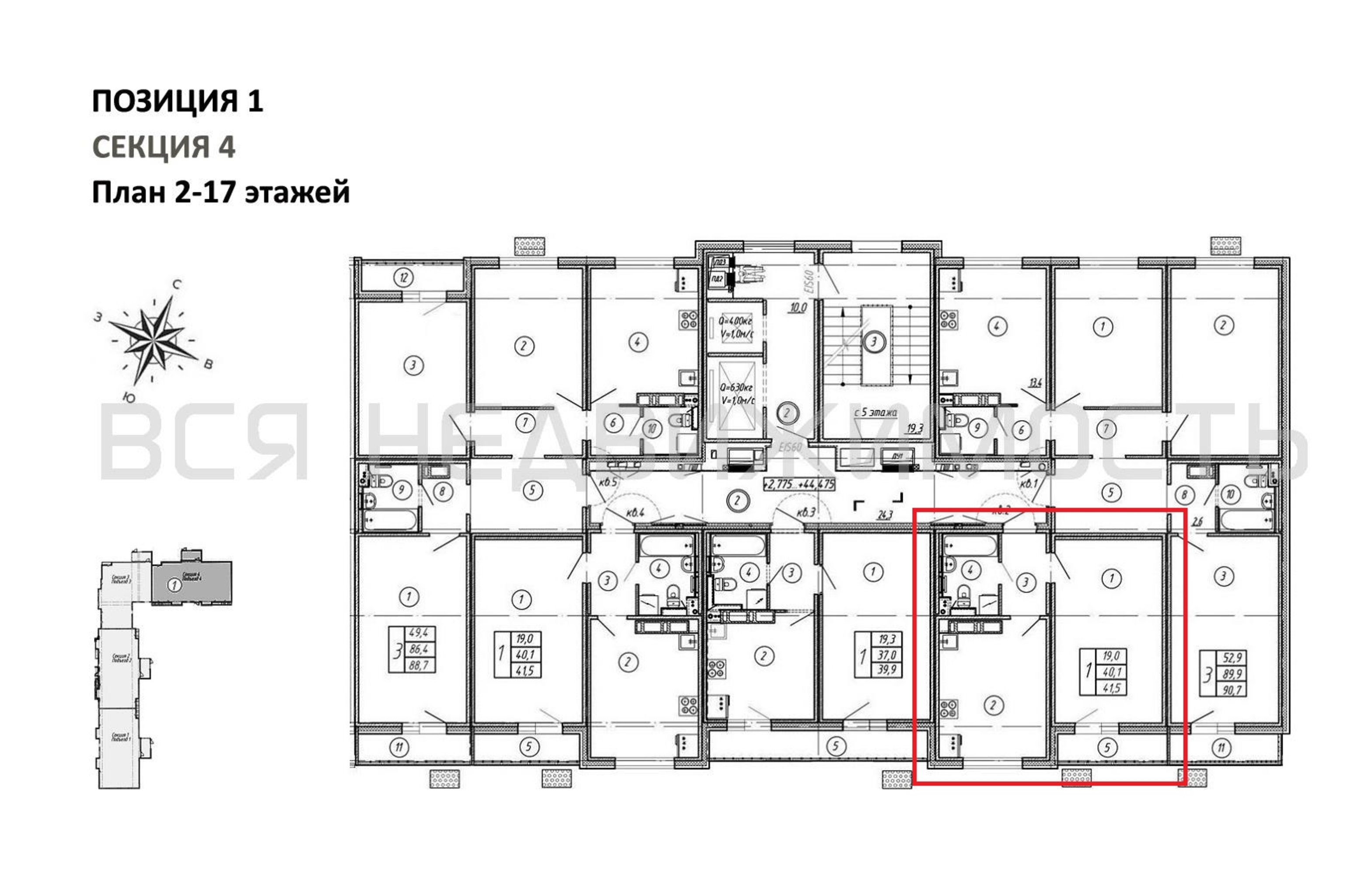 1-комнатная квартира, 41.50 м² 17/17 этаж ID объекта 100125172