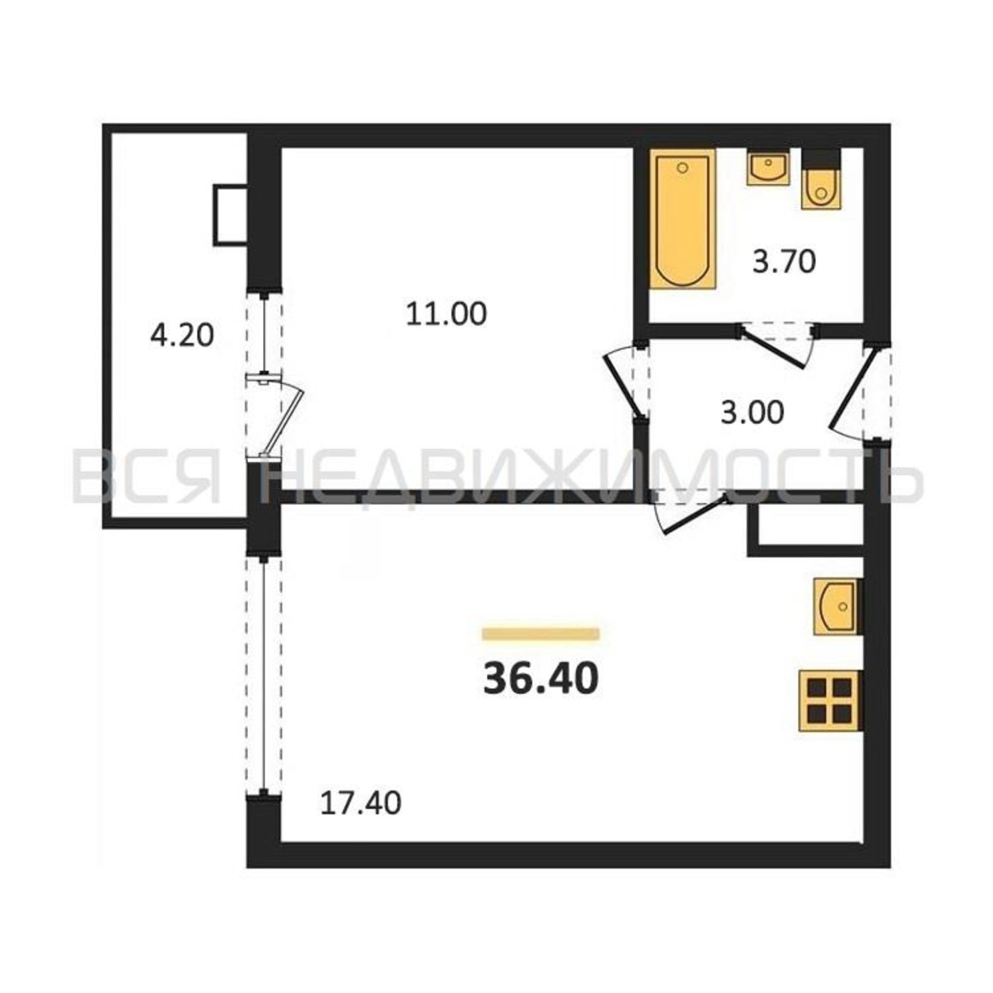 1-комнатная квартира, 36.40 м² 2/17 этаж ID объекта 100125191