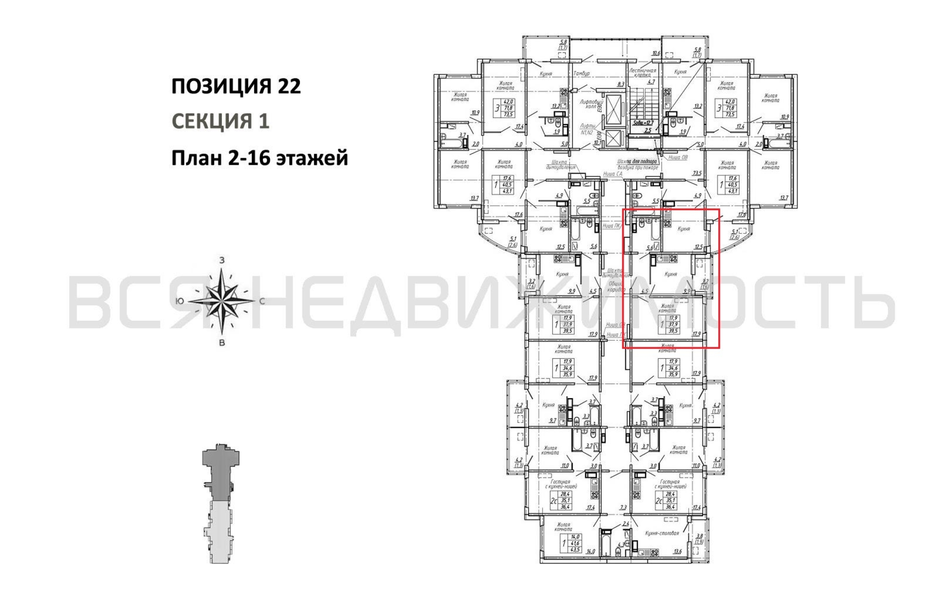1-комнатная квартира, 39.50 м² 16/17 этаж ID объекта 100125341