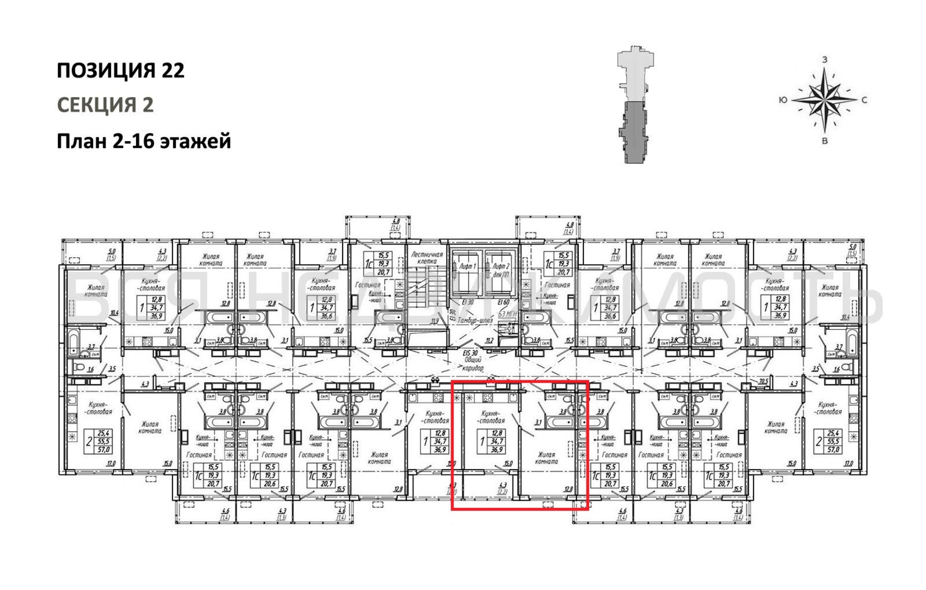 1-комнатная квартира, 36.90 м² 4/17 этаж ID объекта 100125415