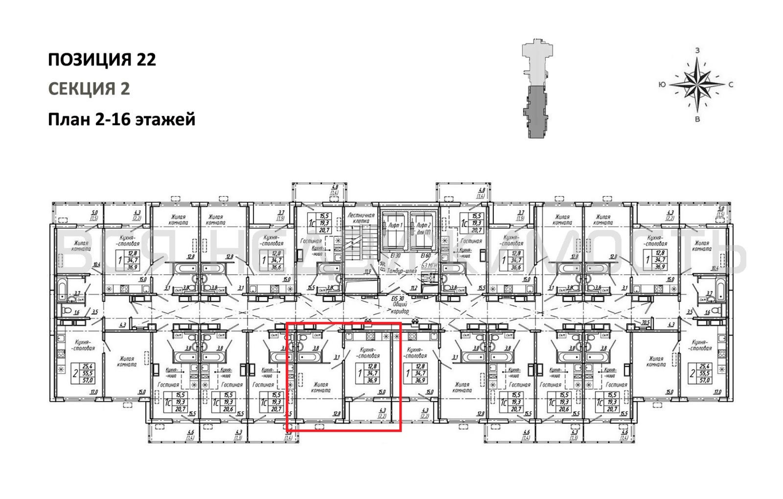 1-комнатная квартира, 36.90 м² 4/17 этаж ID объекта 100125416