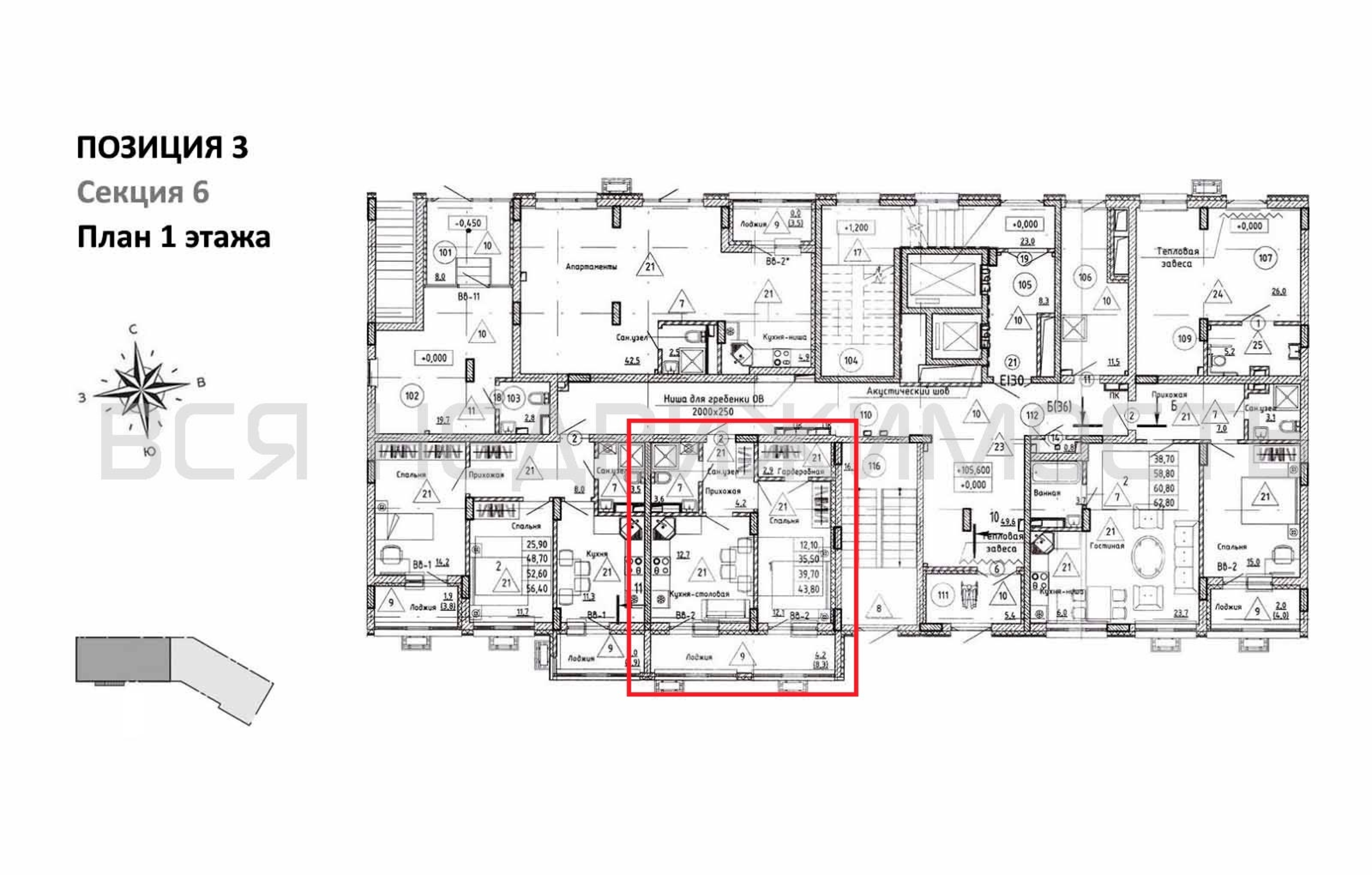 1-комнатная квартира, 39.70 м² 1/14 этаж ID объекта 100125650