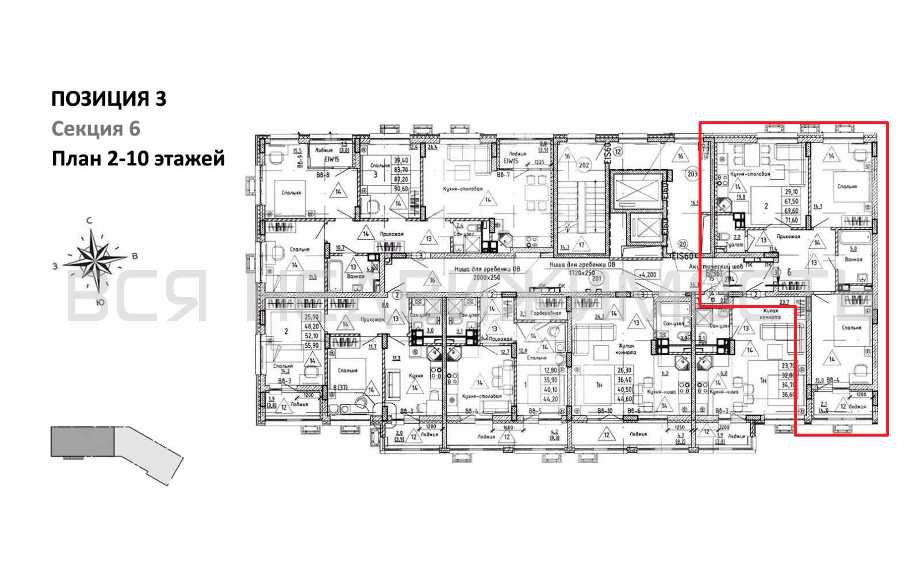2-комнатная квартира, 69.60 м² 4/14 этаж ID объекта 100125664