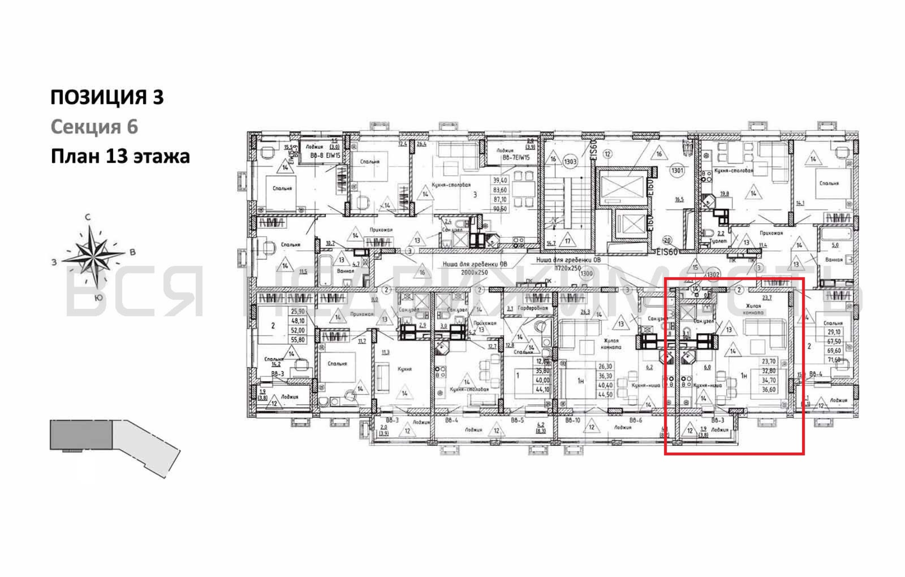 Квартиры-студии, 34.70 м² 13/14 этаж ID объекта 100125719