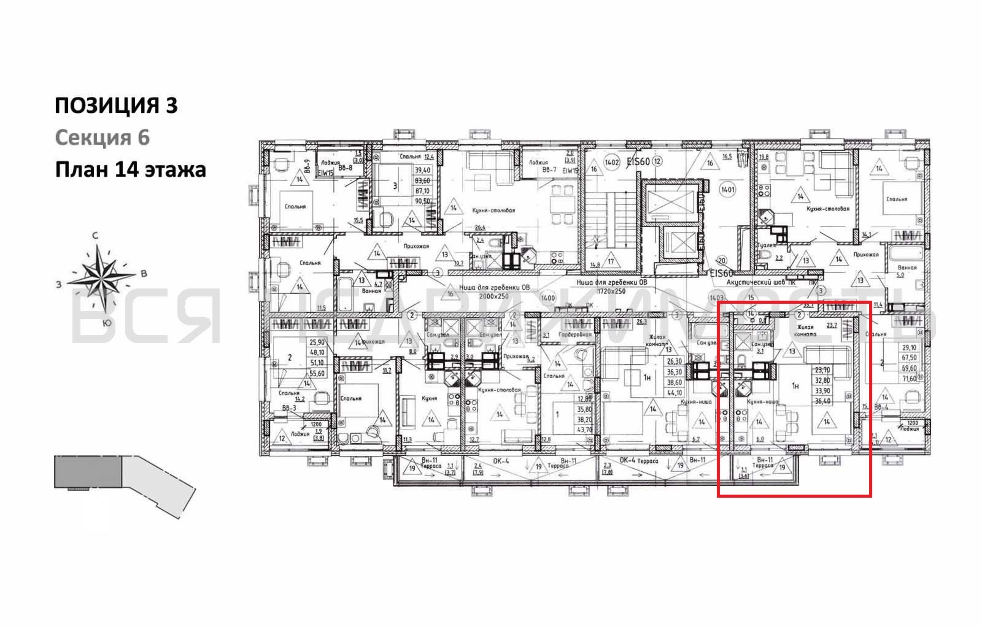 Квартиры-студии, 33.90 м² 14/14 этаж ID объекта 100125725