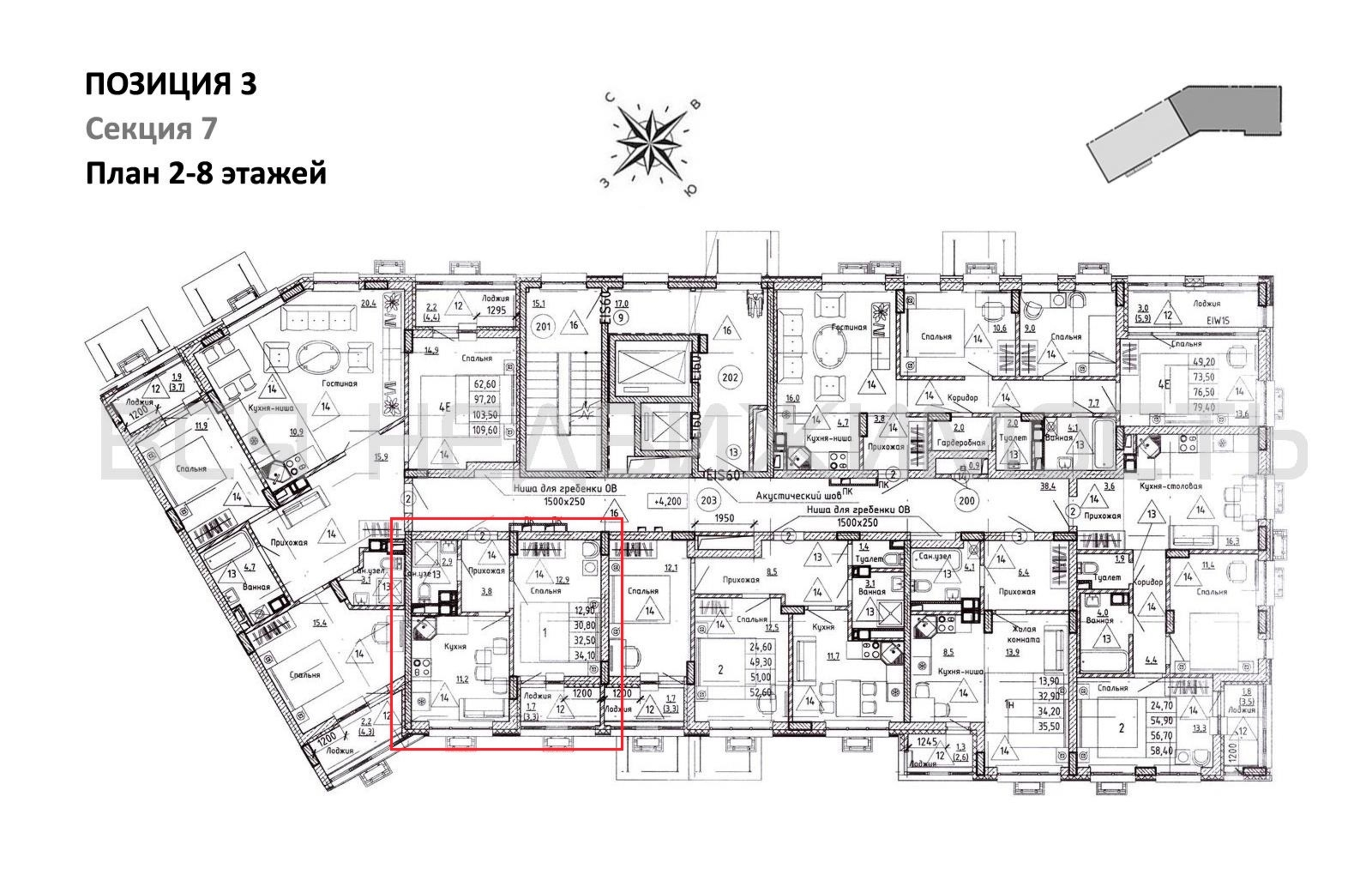 1-комнатная квартира, 32.50 м² 2/14 этаж ID объекта 100125737