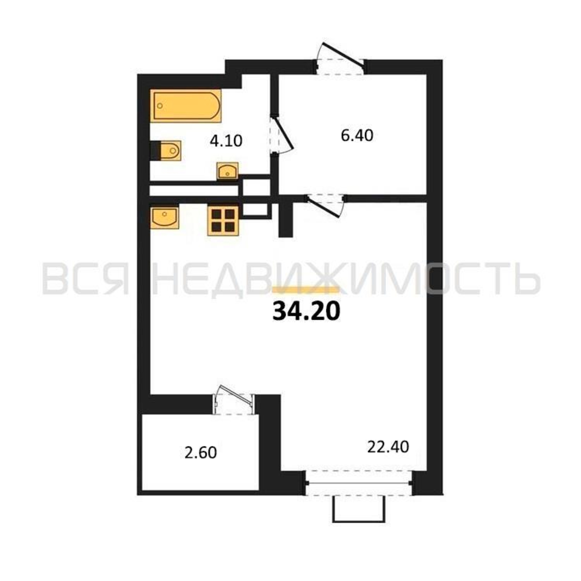 Квартиры-студии, 34.20 м² 4/14 этаж ID объекта 100125747