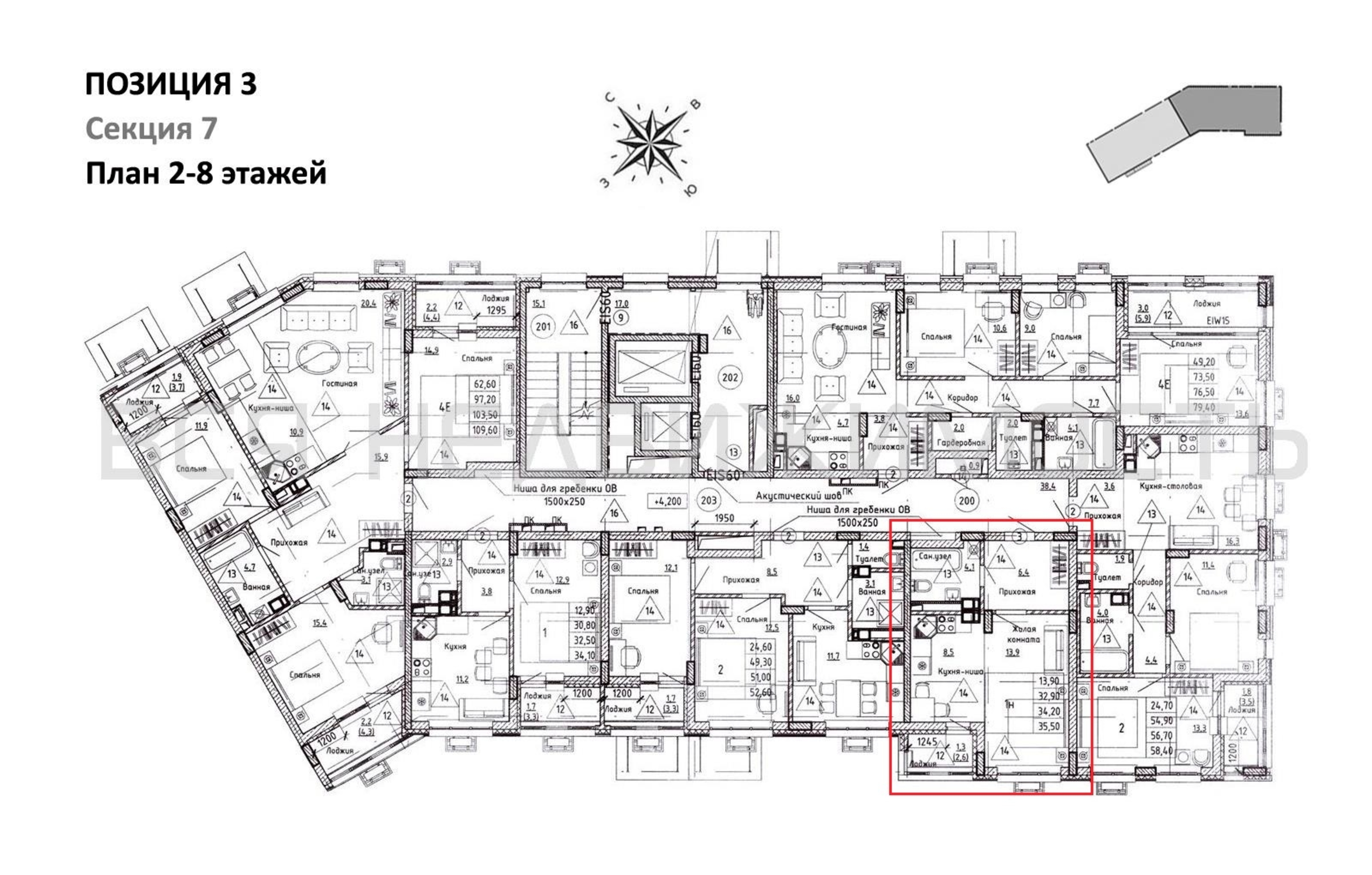 Квартиры-студии, 34.20 м² 7/14 этаж ID объекта 100125765
