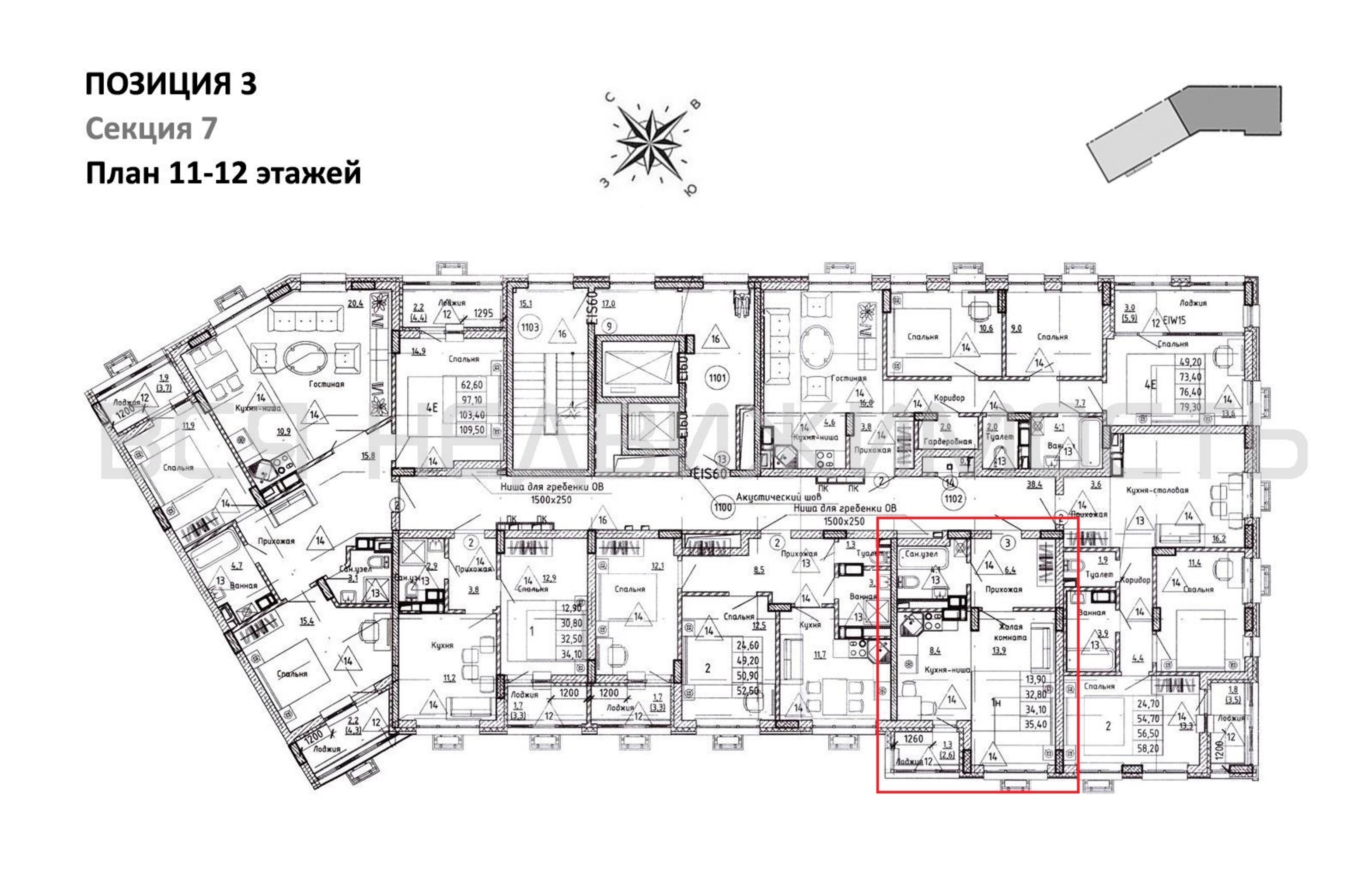 Квартиры-студии, 34.10 м² 11/14 этаж ID объекта 100125789