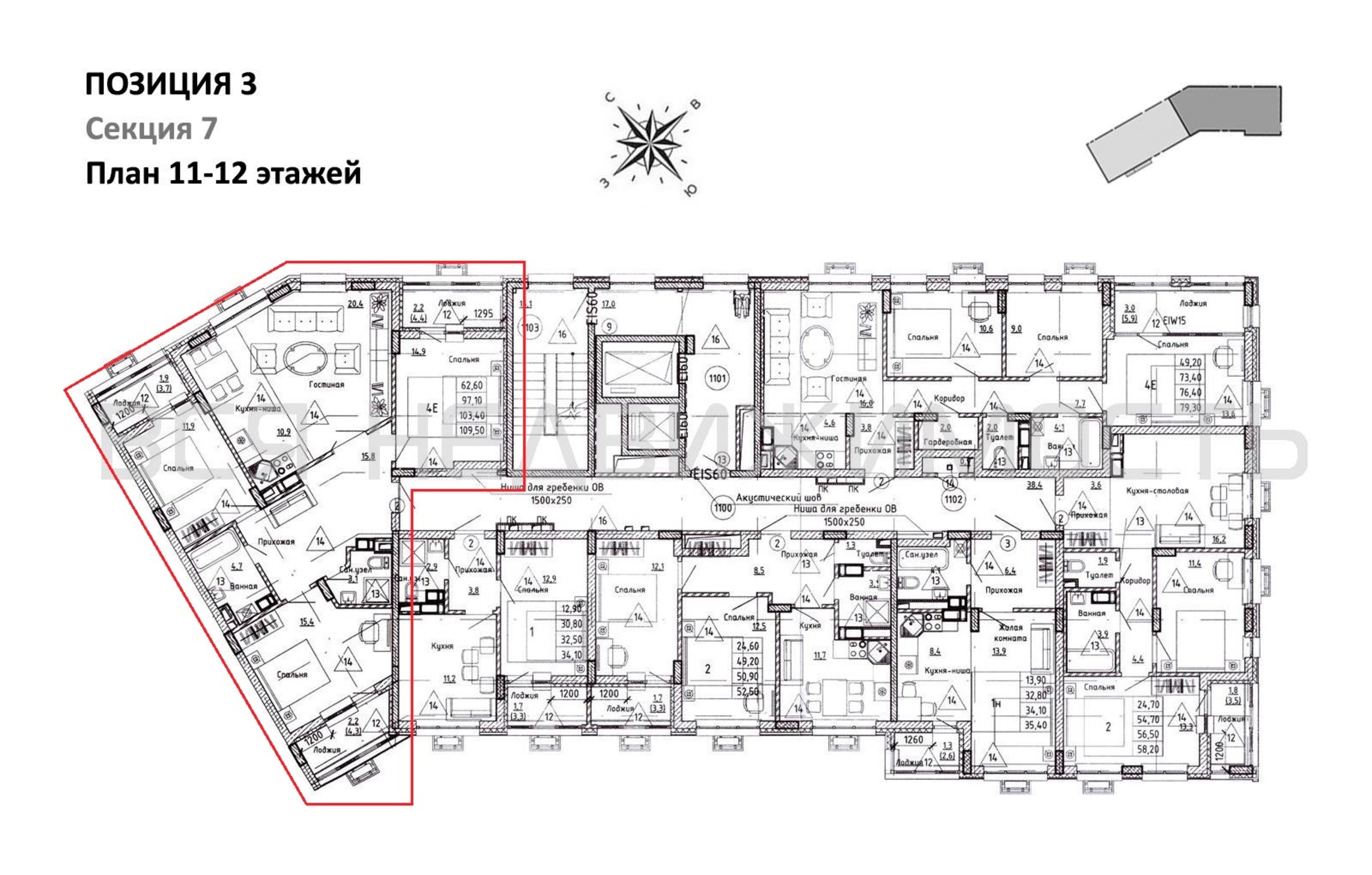 3-комнатная квартира, 103.40 м² 11/14 этаж ID объекта 100125792