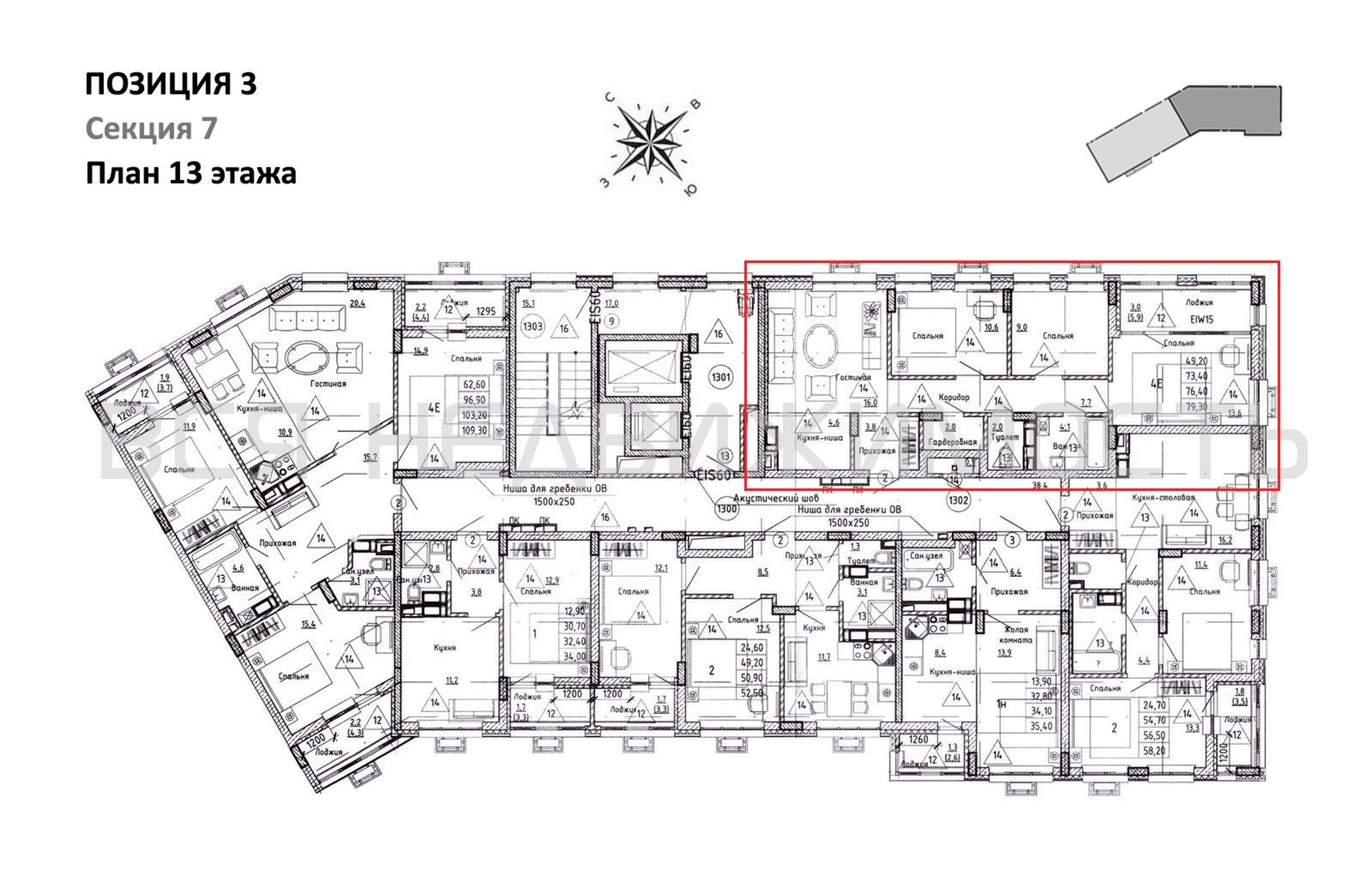 3-комнатная квартира, 76.40 м² 13/14 этаж ID объекта 100125799