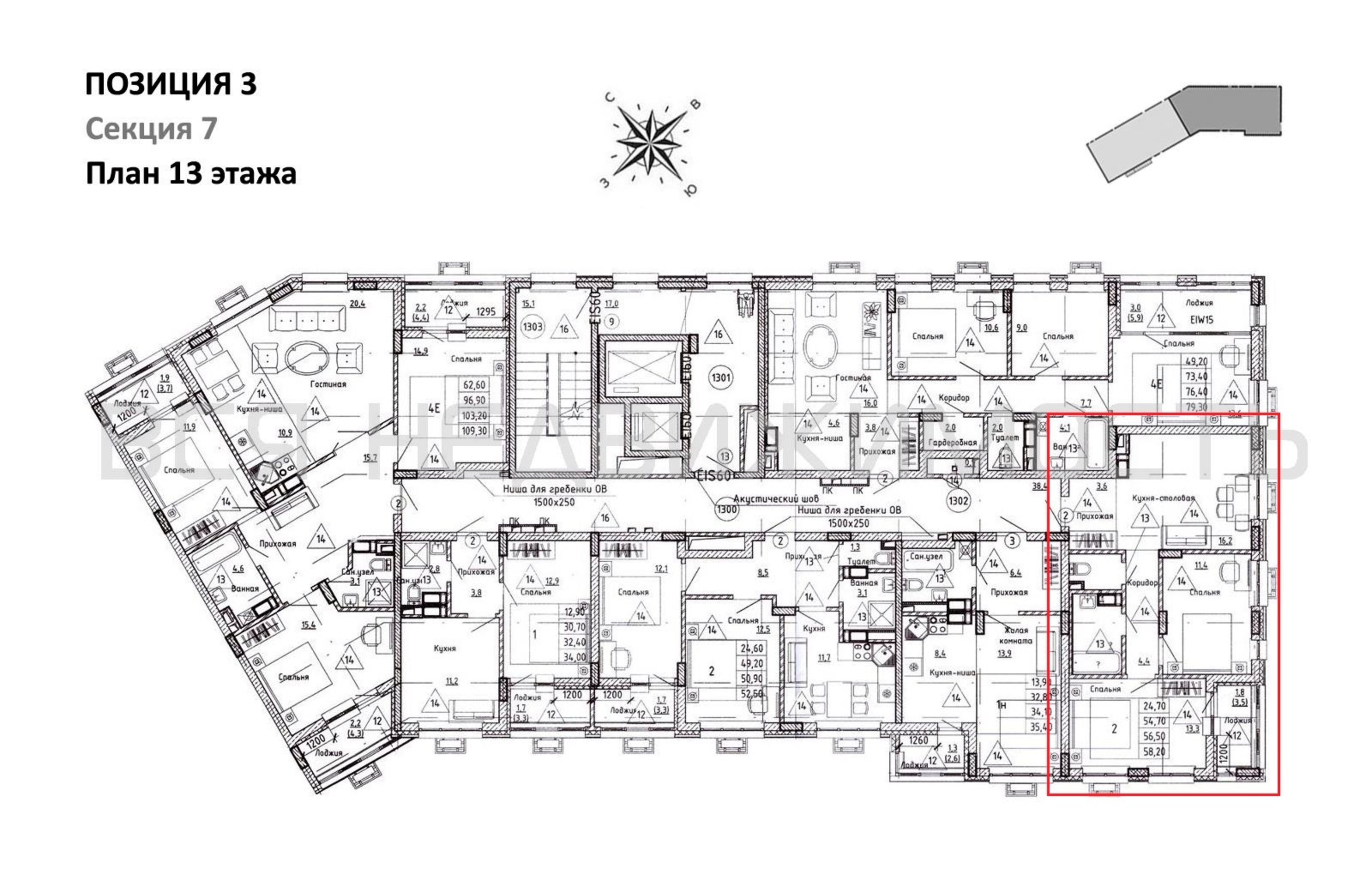 2-комнатная квартира, 56.50 м² 13/14 этаж ID объекта 100125800