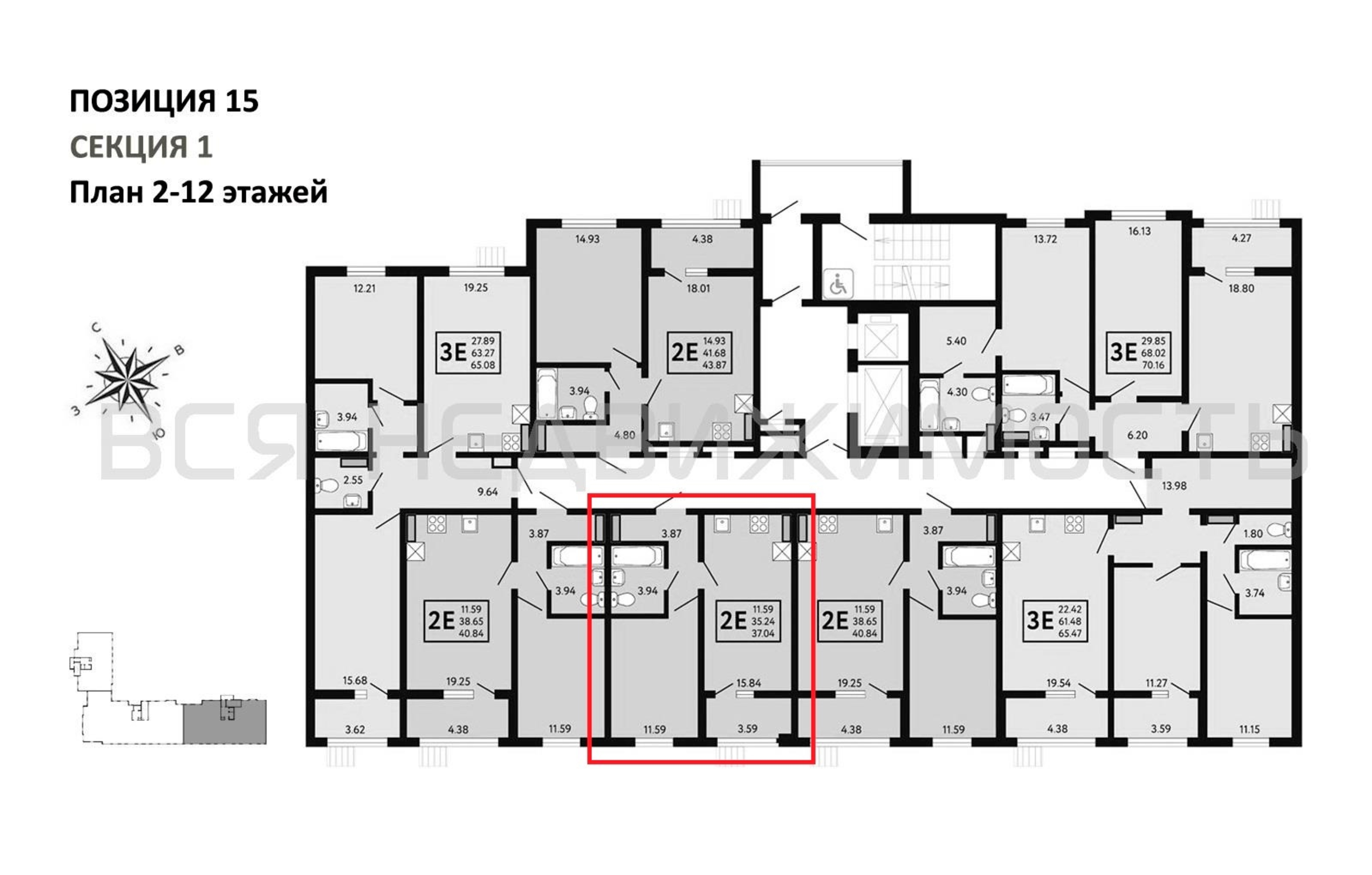 1-комнатная квартира, 37.04 м² 5/12 этаж ID объекта 100125926