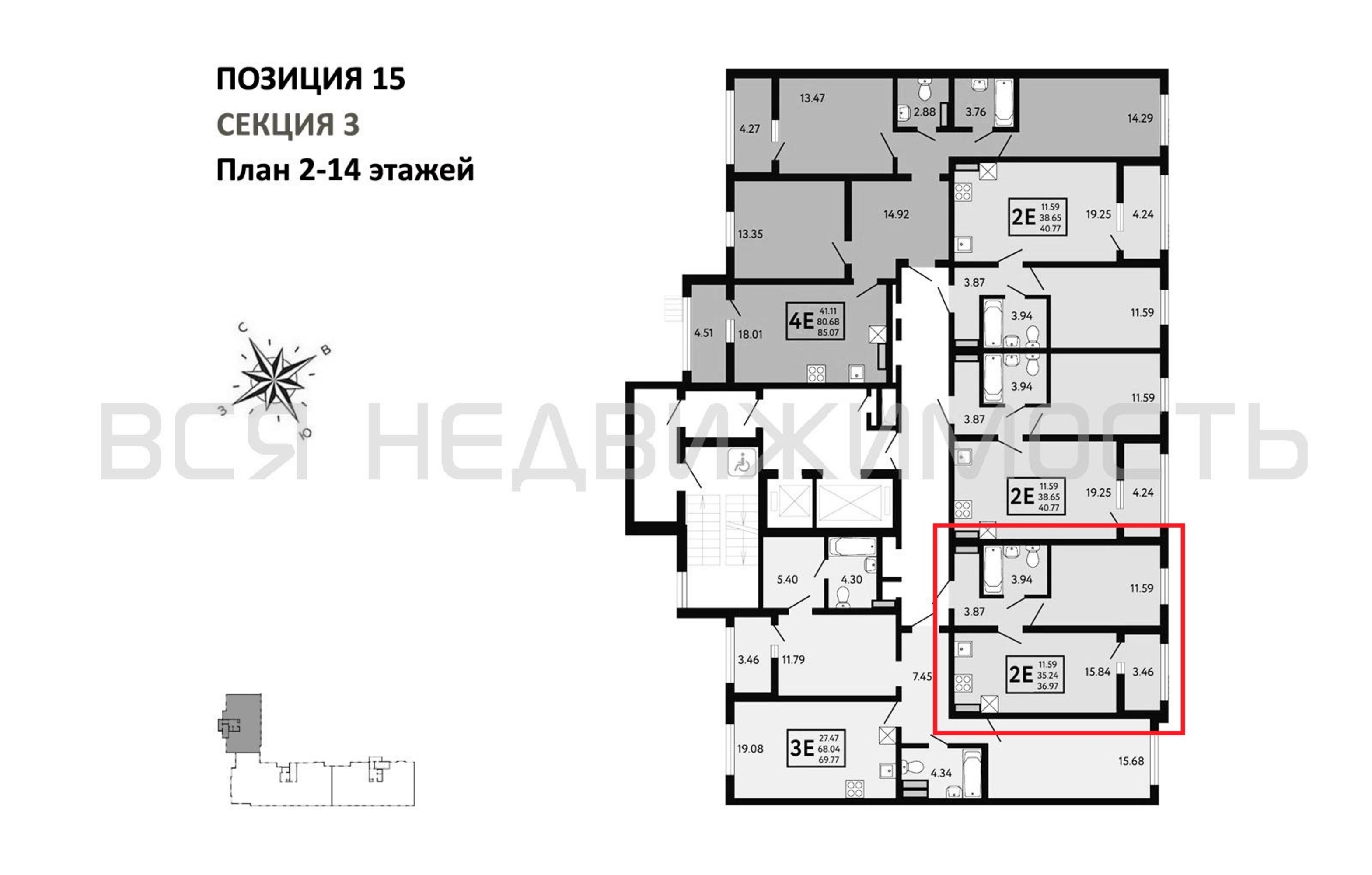 1-комнатная квартира, 36.97 м² 6/14 этаж ID объекта 100126076