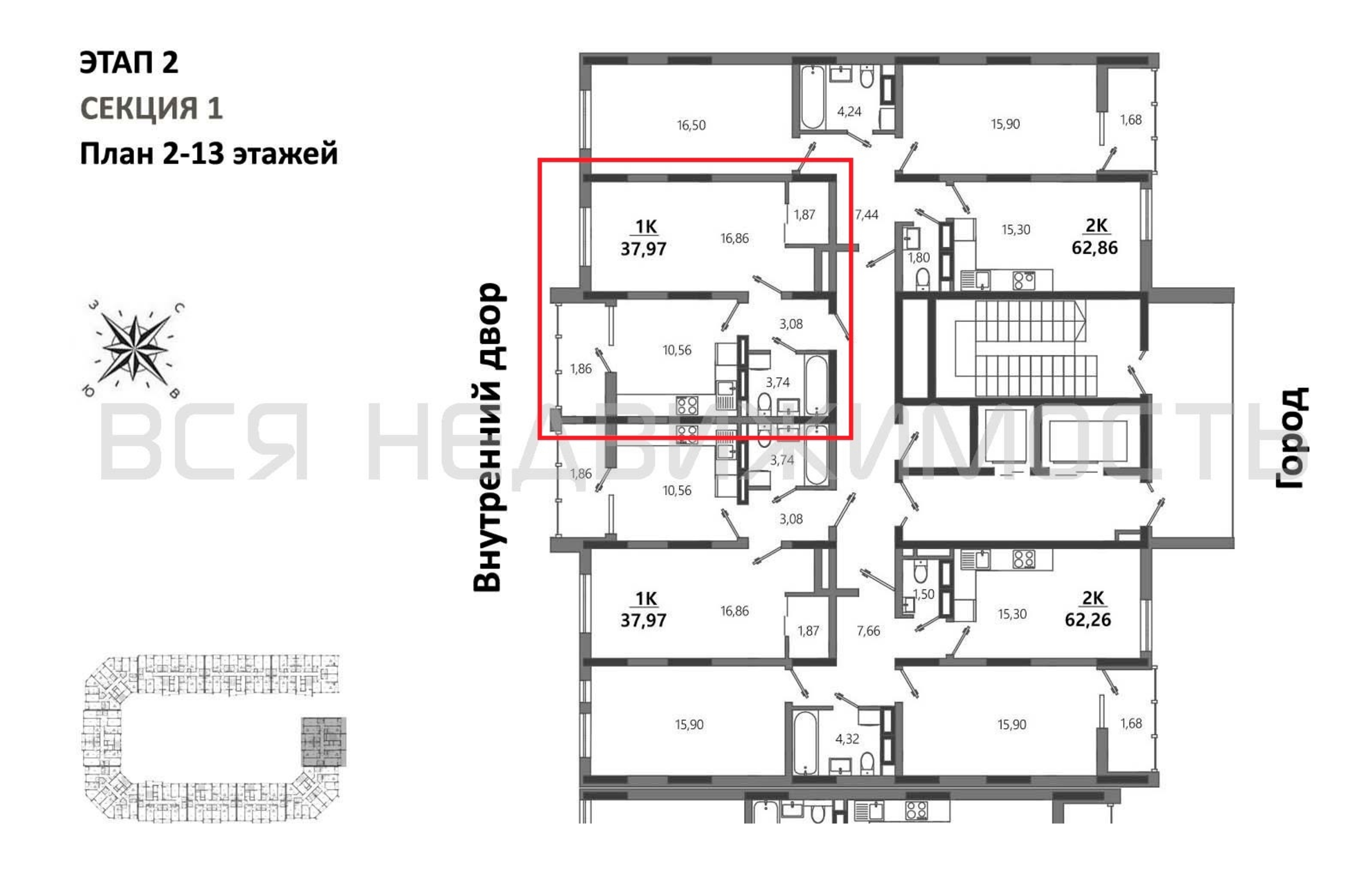 1-комнатная квартира, 37.97 м² 12/13 этаж ID объекта 100127346