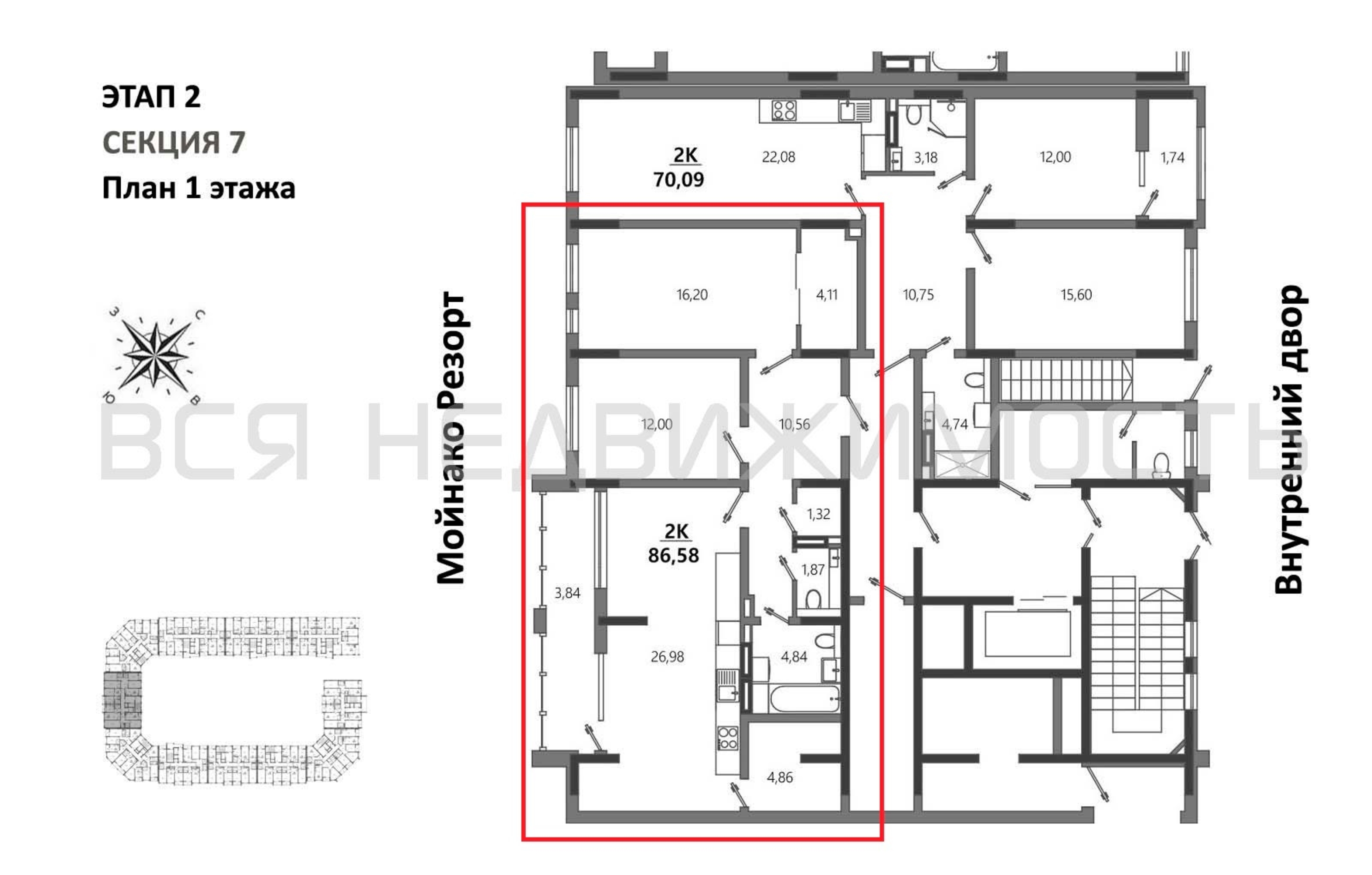 2-комнатная квартира, 86.58 м² 1/6 этаж ID объекта 100127392