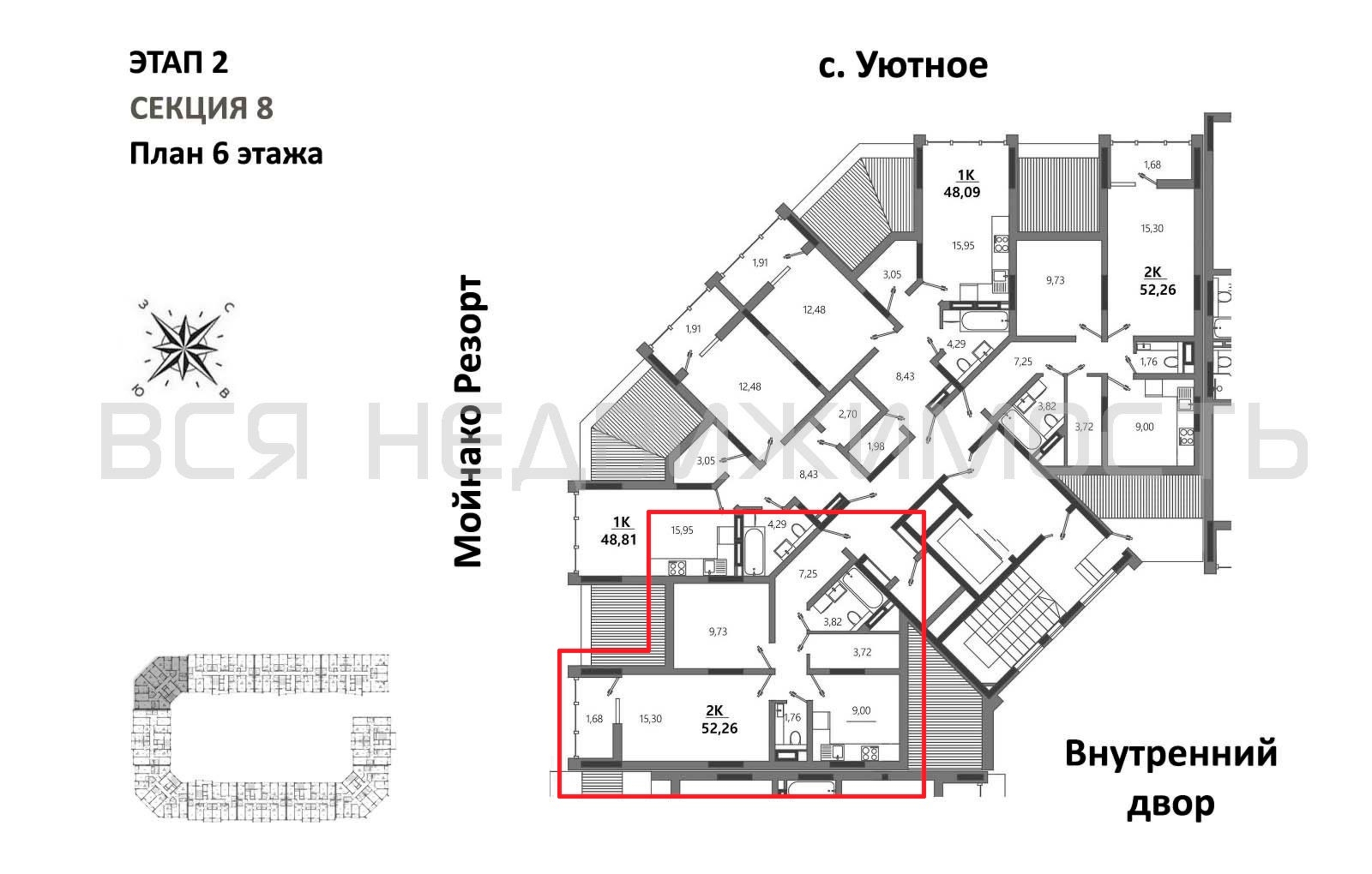 2-комнатная квартира, 52.26 м² 6/6 этаж ID объекта 100127403
