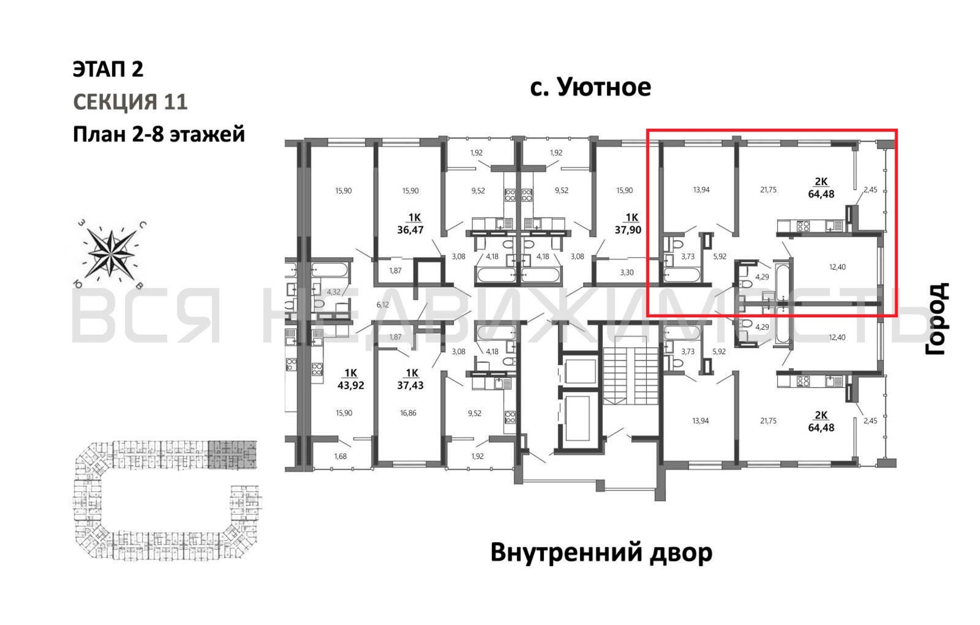 2-комнатная квартира, 64.48 м² 7/10 этаж ID объекта 100127406