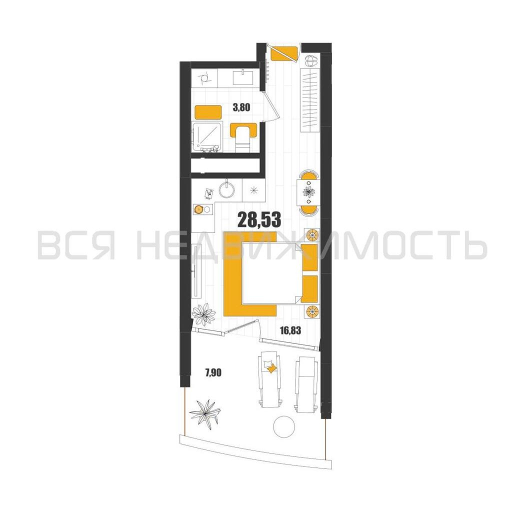 Квартиры-студии, 28.53 м² 17/22 этаж ID объекта 100128340
