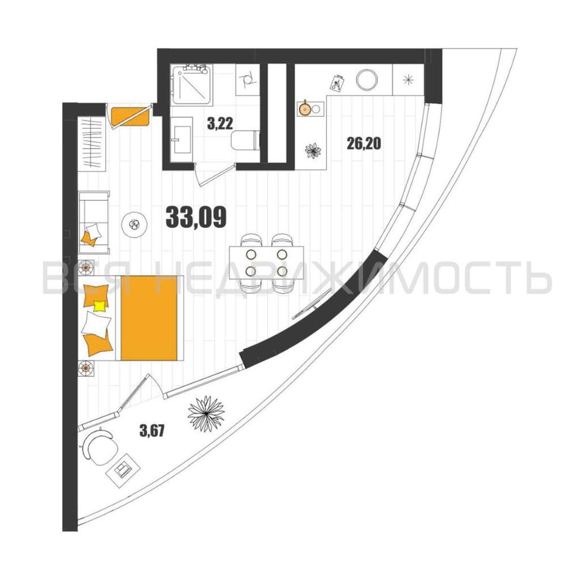Квартиры-студии, 33.09 м² 18/22 этаж ID объекта 100128345