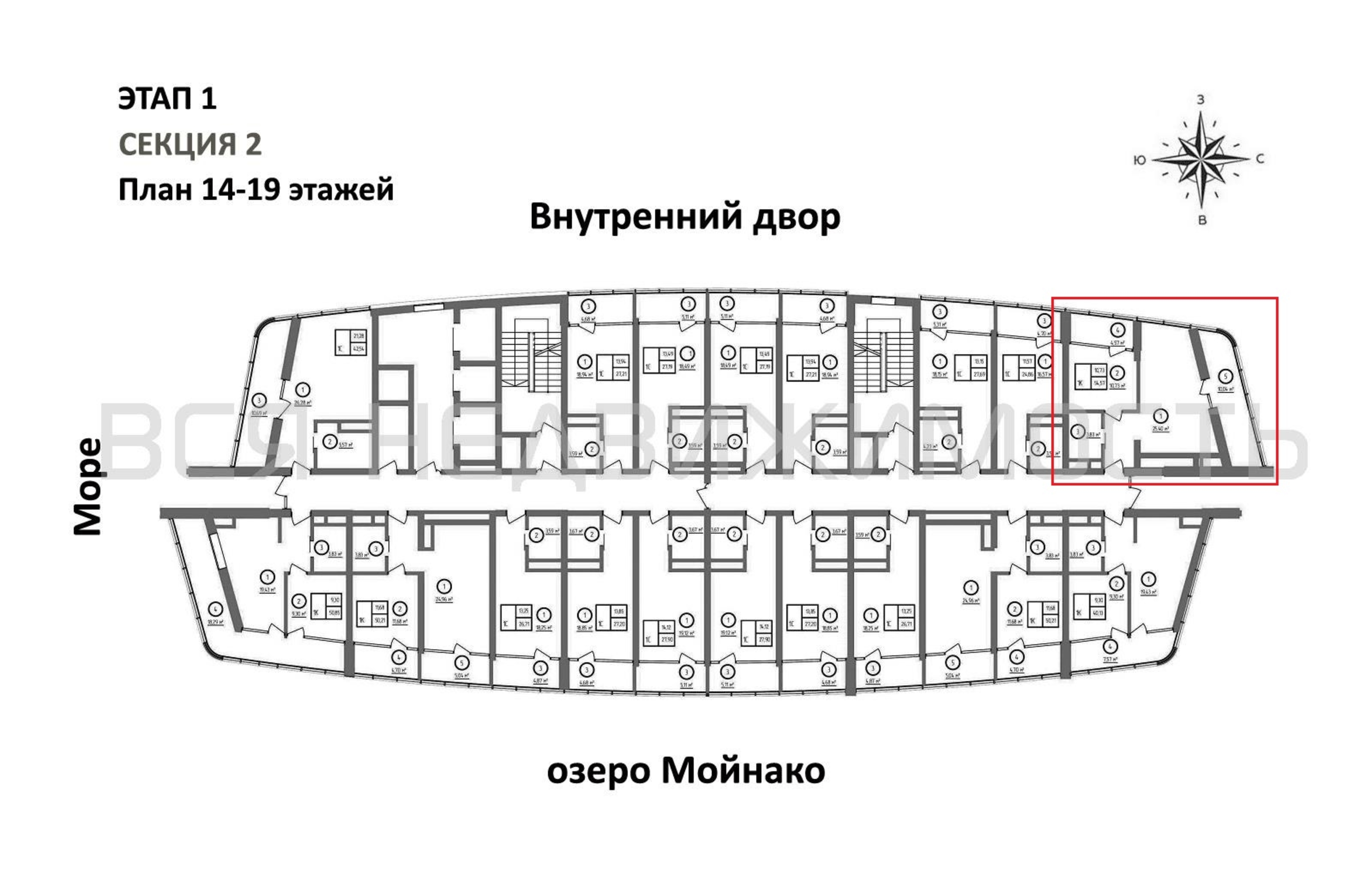 1-комнатная квартира, 54.57 м² 18/22 этаж ID объекта 100128431