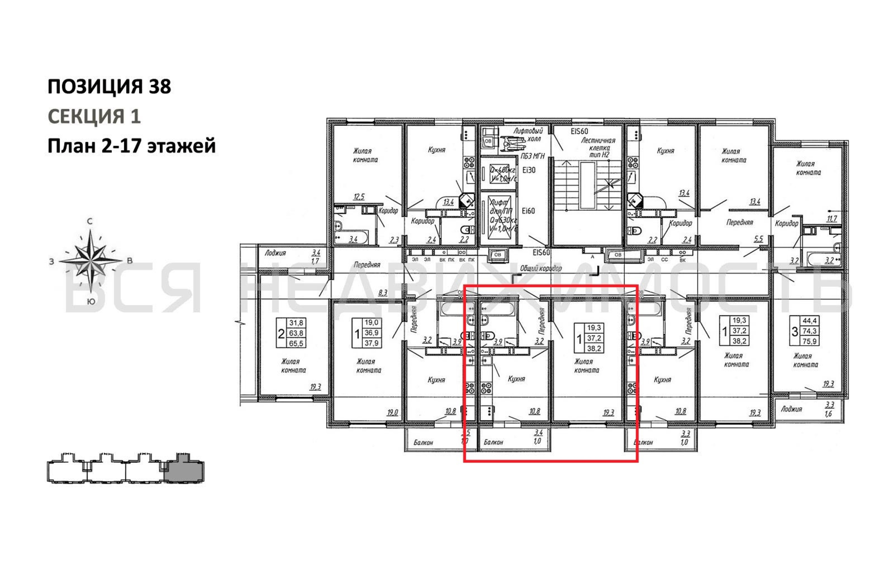 1-комнатная квартира, 38.20 м² 6/17 этаж ID объекта 100129085